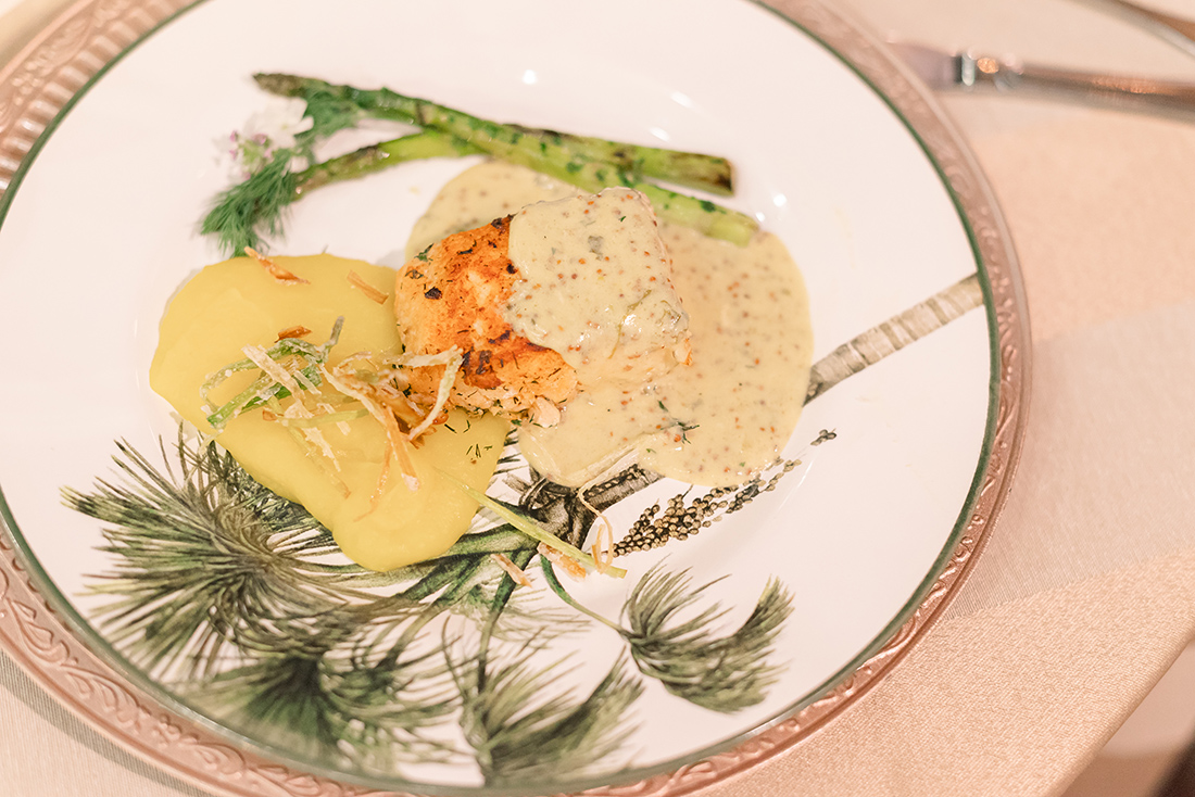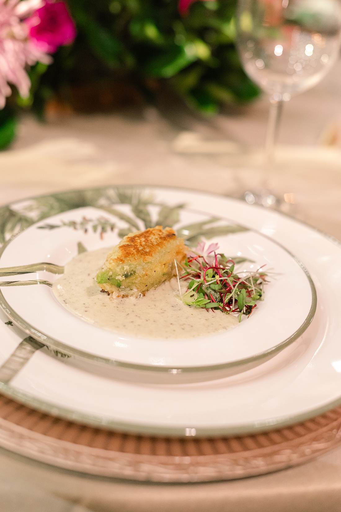 À noite, a Experiência Noiva Ansiosa na Vila dos Eucaliptos incluiu jantar empratado assinado pelo Baracat. Entre as delícias gastronômicas, flor de abóbora com creme de cogumelos e salmão com molho dijon e mel. Como não amar?