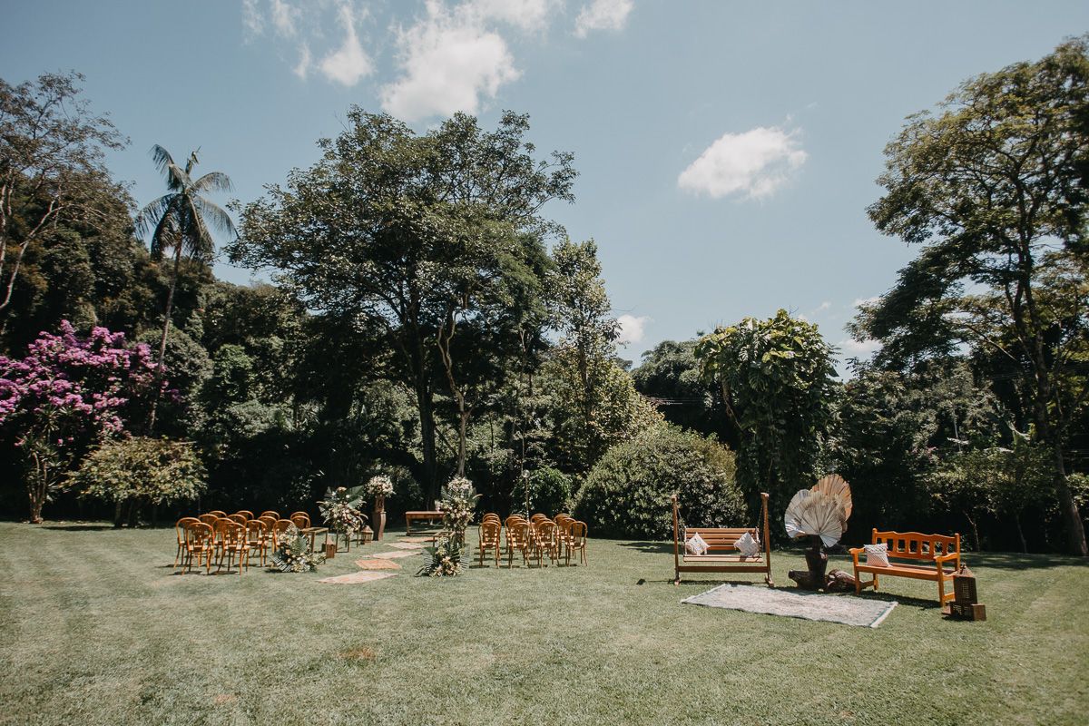 A cerimônia com estilo rústico chic e a recepção com pegada vintage foram cercadas de acolhimento, sobretudo nos detalhes.