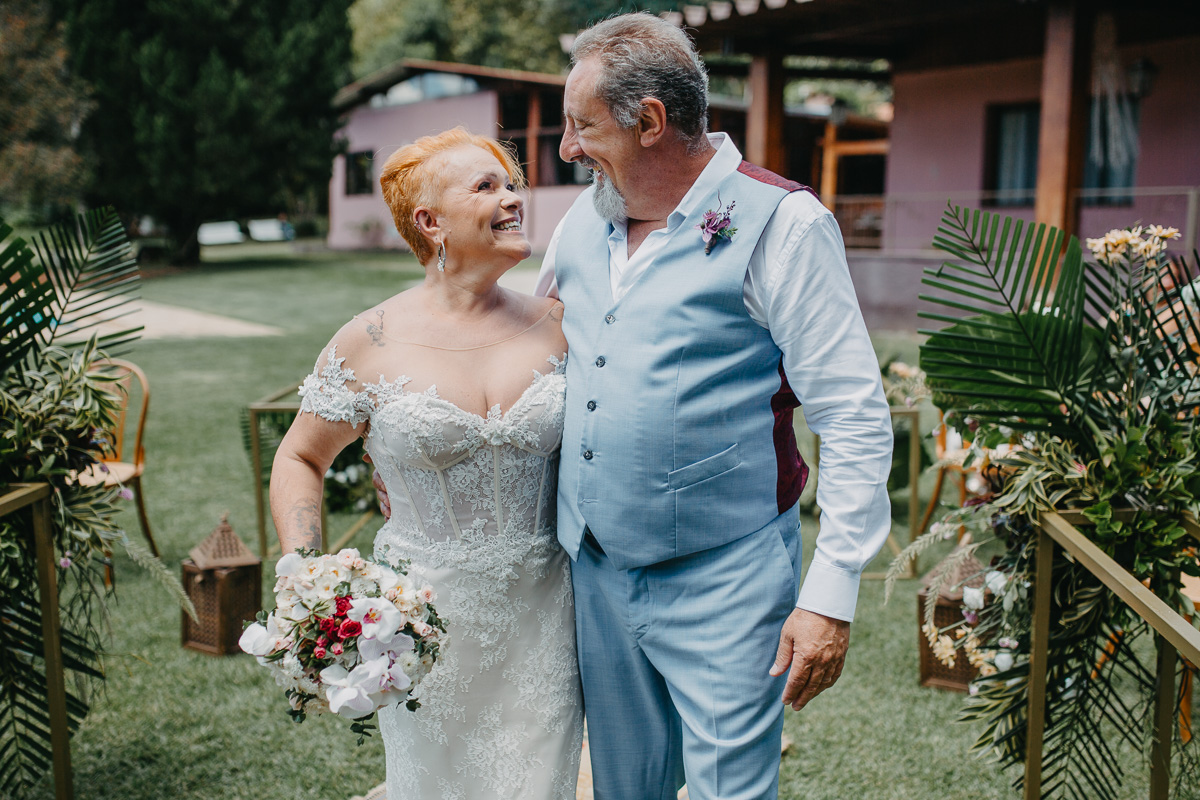 Fabiana e Odair, proprietários do Ravena Garden, optaram por renovar votos no mais novo espaço do grupo, a Kasa de Campo.