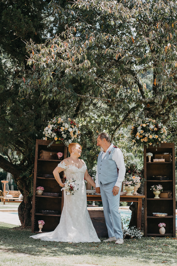 Para a renovação de votos, Fabi e Odair optaram por um clima bem leve e despojado.