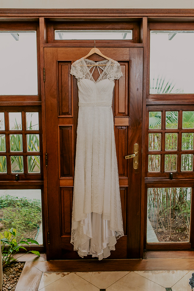 Com o local escolhido, conseguimos organizar todo o restante. Foi o pontapé inicial para as próximas tomadas de decisões, como o vestido boho chic, o cabelo meio preso, a maquiagem não muito pesada, o buquê desconstruído, o convite rústico…