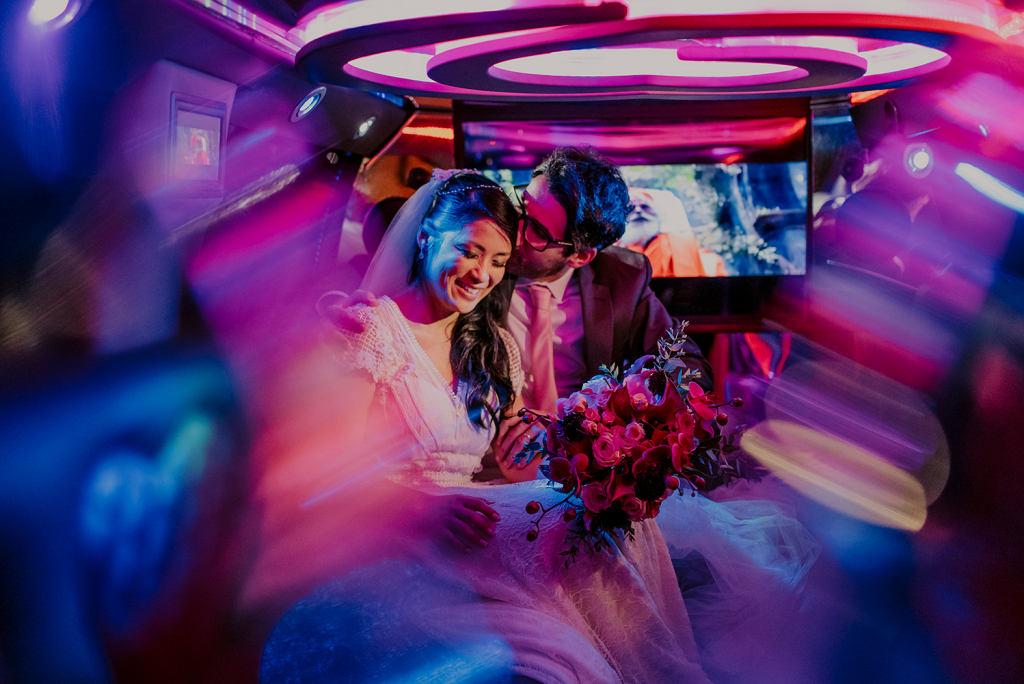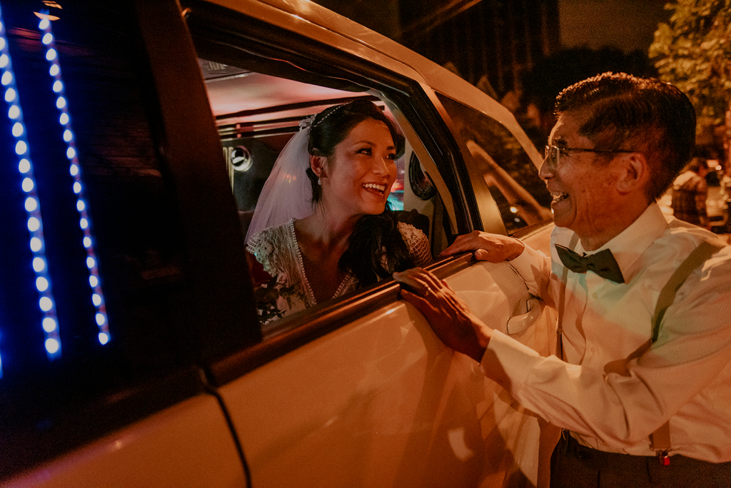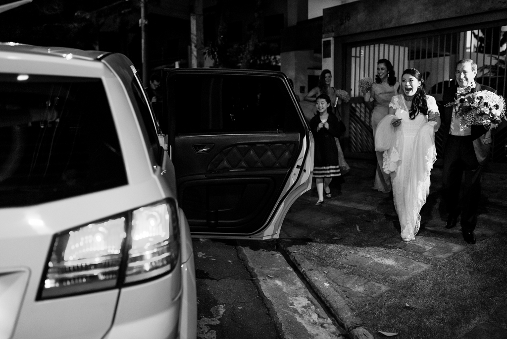 O auge foi a surpresa que os meus tios e padrinhos fizeram: contrataram uma limusine para nos levar até o casamento!
