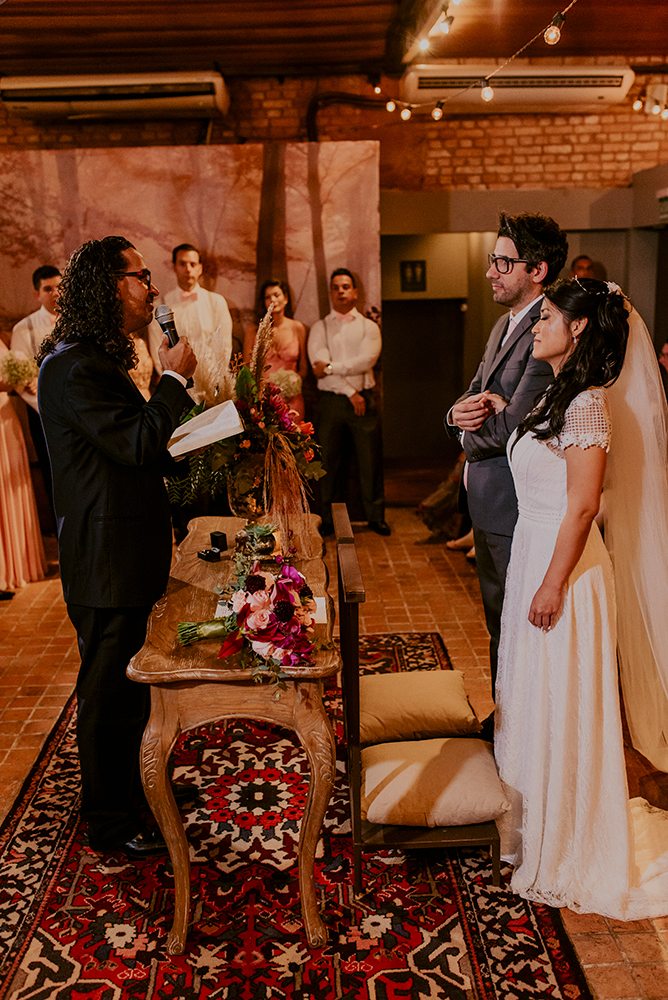 A cerimônia foi muito especial, as músicas tocadas por um trio de músicos excelentes, celebrada pelo pastor da igreja IBAB, com palavras lindas, troca de votos, abraços apertados, beijos e muita emoção!