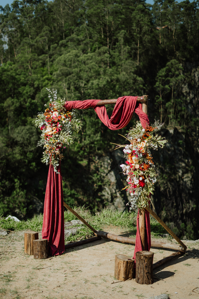 A Flavia chegou na pedreira achando que faria algumas fotos, quando deu de cara com o altar maravilhoso feito pela Violeta Decorações.