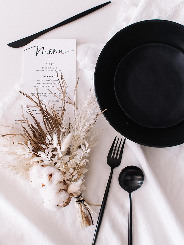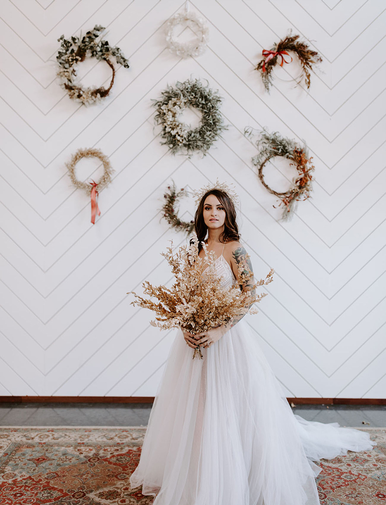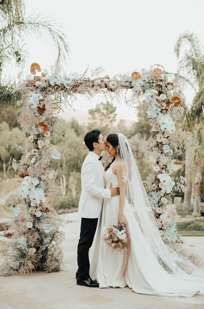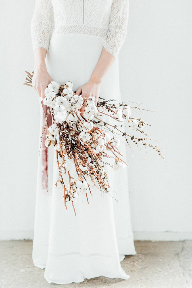 Embora tenha tudo a ver com o visual descontraído dos casamentos ao ar livre, as flores secas encaixam bem em celebrações modernas e caem como uma luva para a estética minimalista.