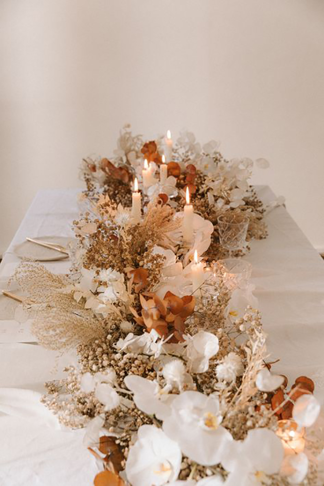 Independente da estação, local ou estilo do casamento, a decoração com elementos secos é de encher os olhos!