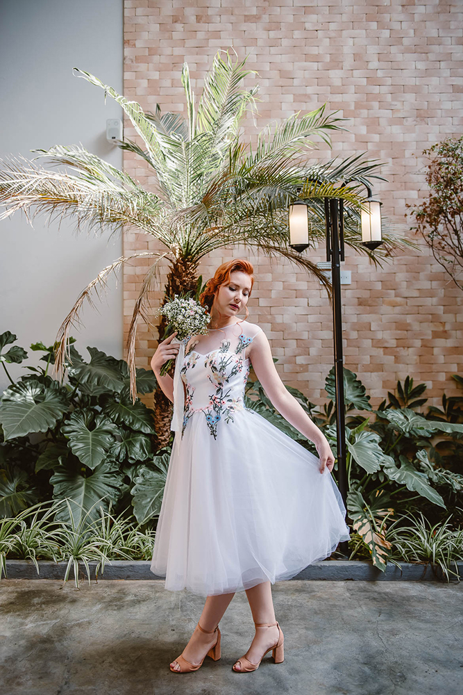 Voltada para propostas mais descontraídas e mini weddings, a produção realça e empodera a noiva, que é livre para ousar e abusar das cores e formas cheias de romantismo.