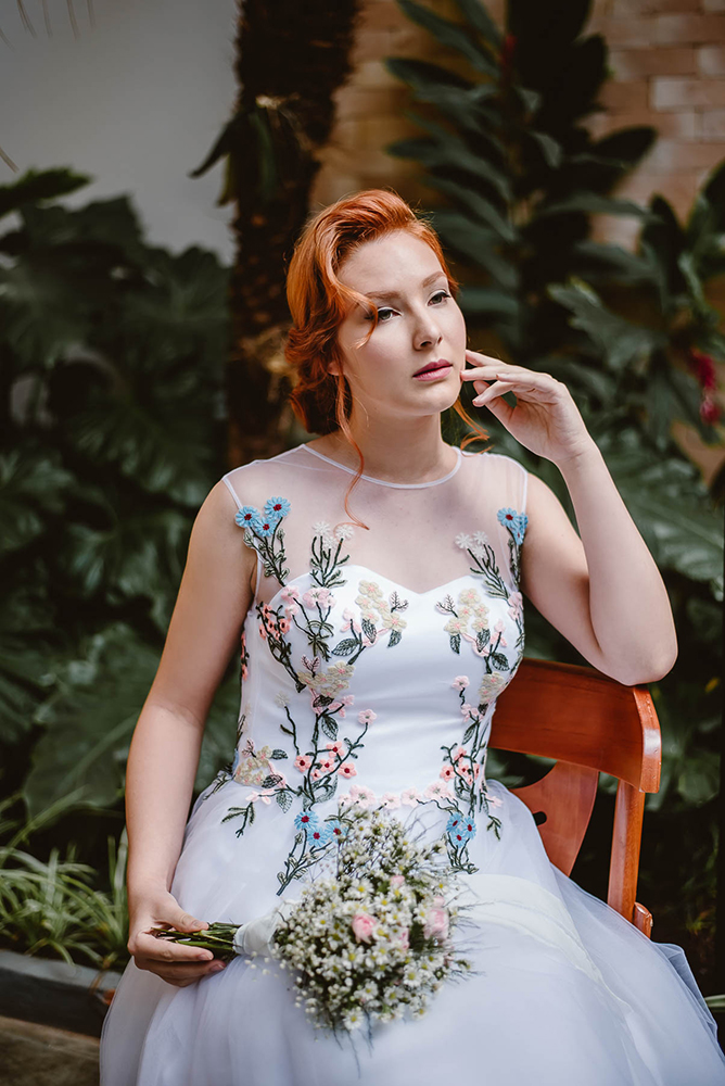 “Em comemoração ao primeiro ano do atelier, queríamos uma produção que mostrasse um pouco da nossa identidade e da liberdade de escolha que nossas noivas tanto buscam. Criamos o editorial Flourish para trazer a estética vintage que amamos, de maneira revisitada.