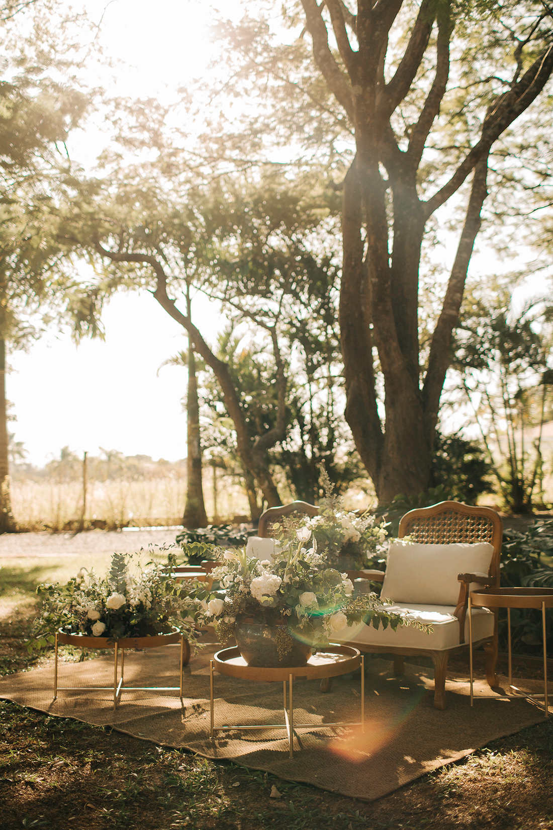 A elegância leve da decor assinada por Karina Saab deixou alguns cantinhos da Fazenda Capela do Bosque ainda mais impressionantes, dando ênfase ao verde do local.