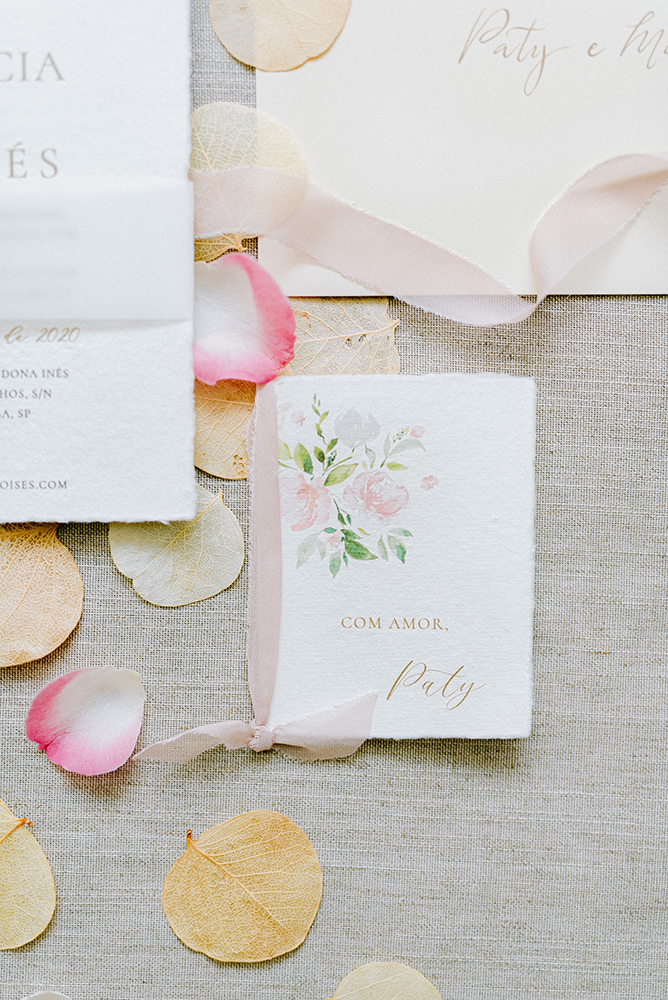 O mesmo vale para o convite de casamento. Em resumo, é possível ter uma papelaria sustentável, mesmo que o casal não opte por papel semente ou outros clichês associados ao tema.