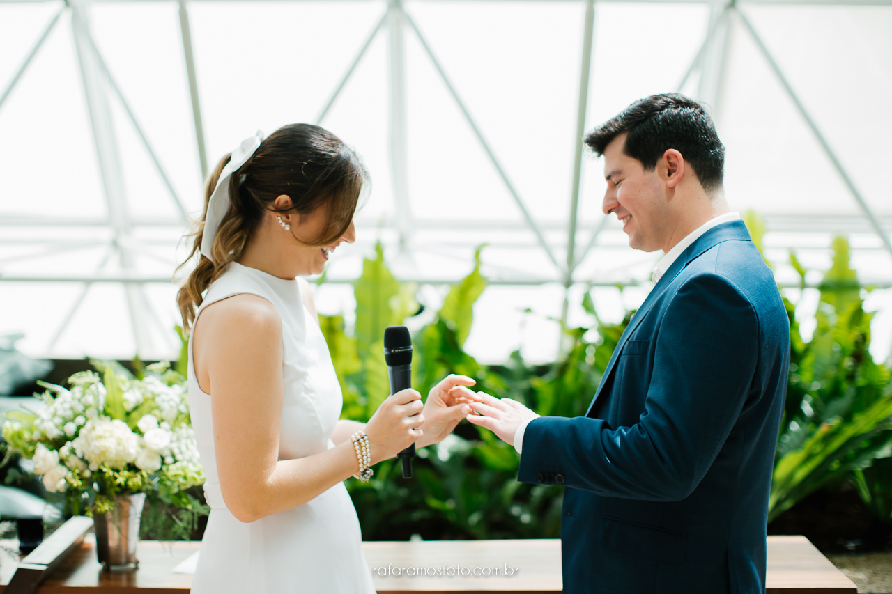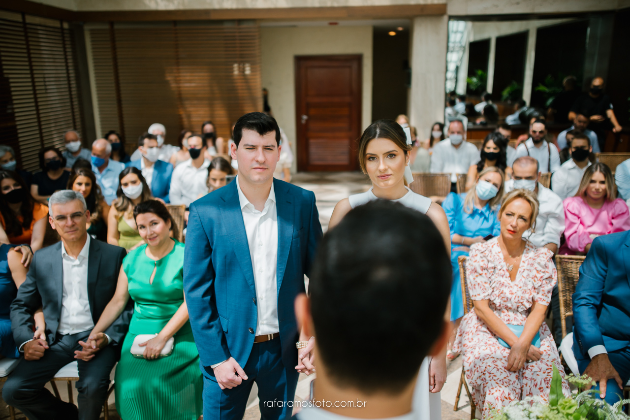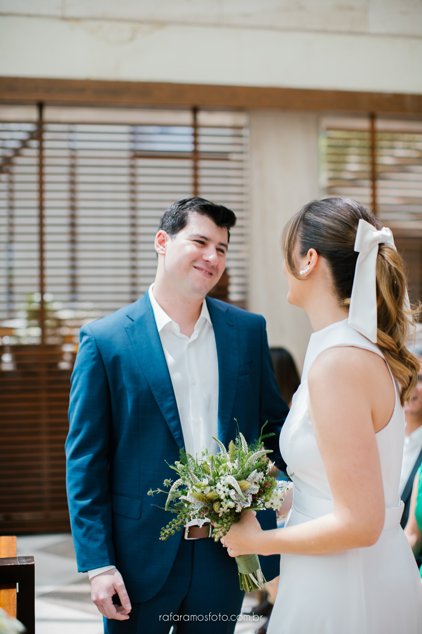 Decoração delicada, simplicidade elegante e a celebração de um relacionamento de mais de 10 anos. Assim foi o mini wedding da Giovana e do Bruno, no Renaissance.