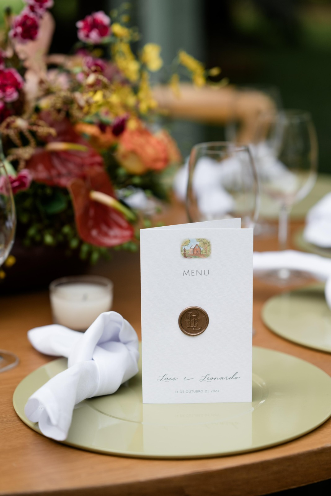 Com a identidade visual do casamento, garantimos que todos os detalhes da festa estejam em harmonia e conversando entre si, desde o convite até a decoração.