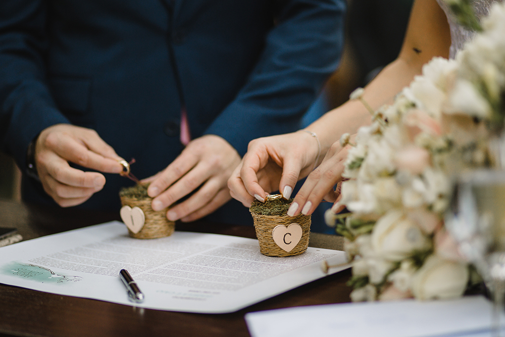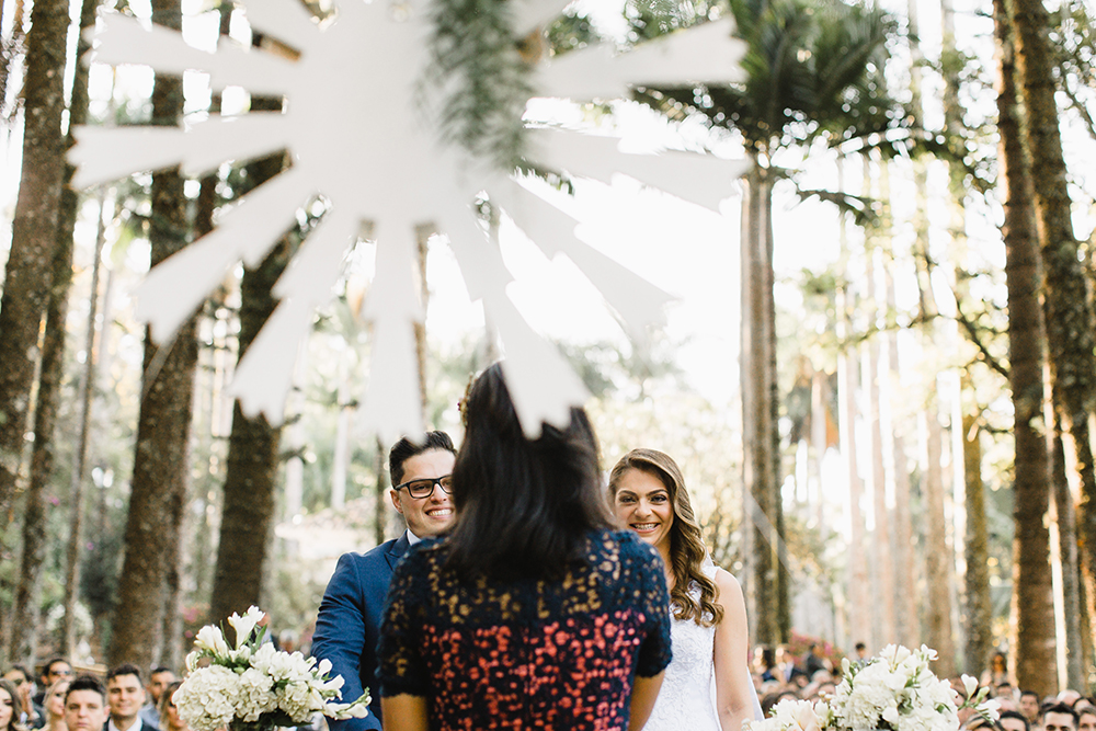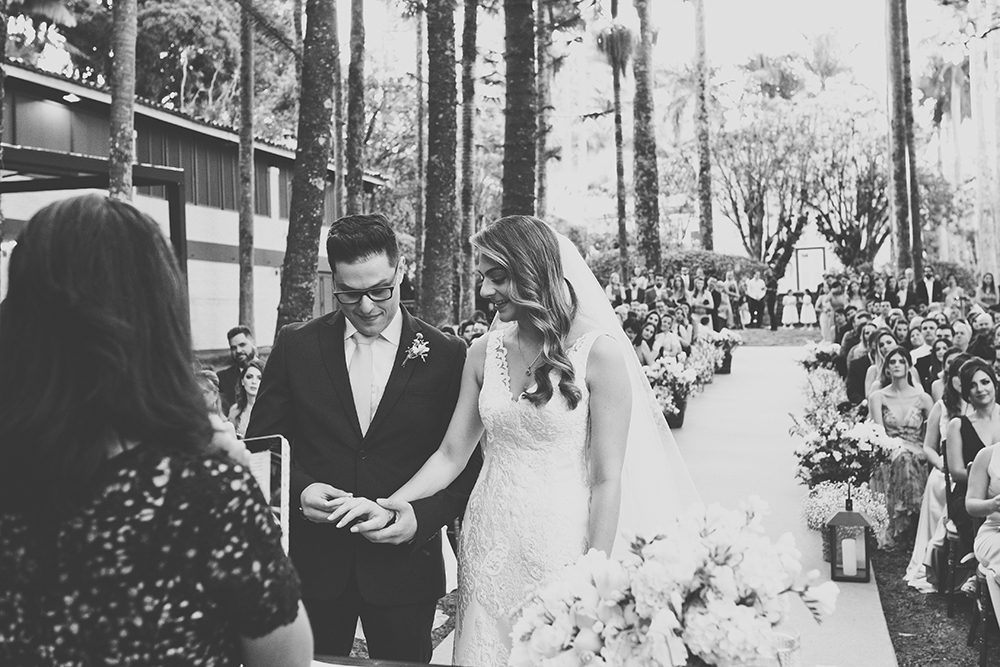 Foram 6 anos até a troca de alianças, que aconteceu em uma linda cerimônia ao ar livre.