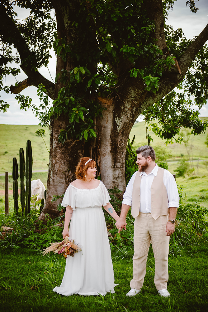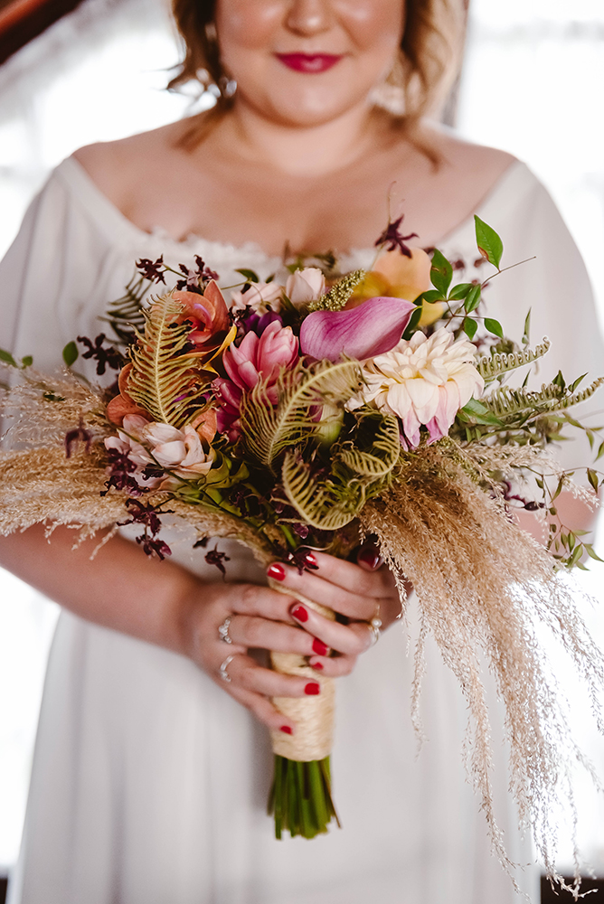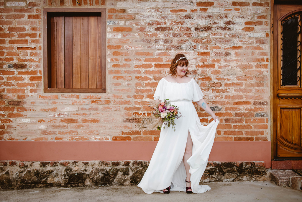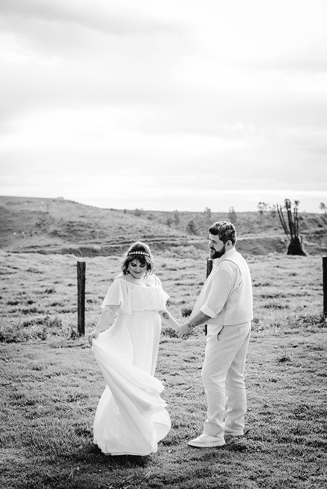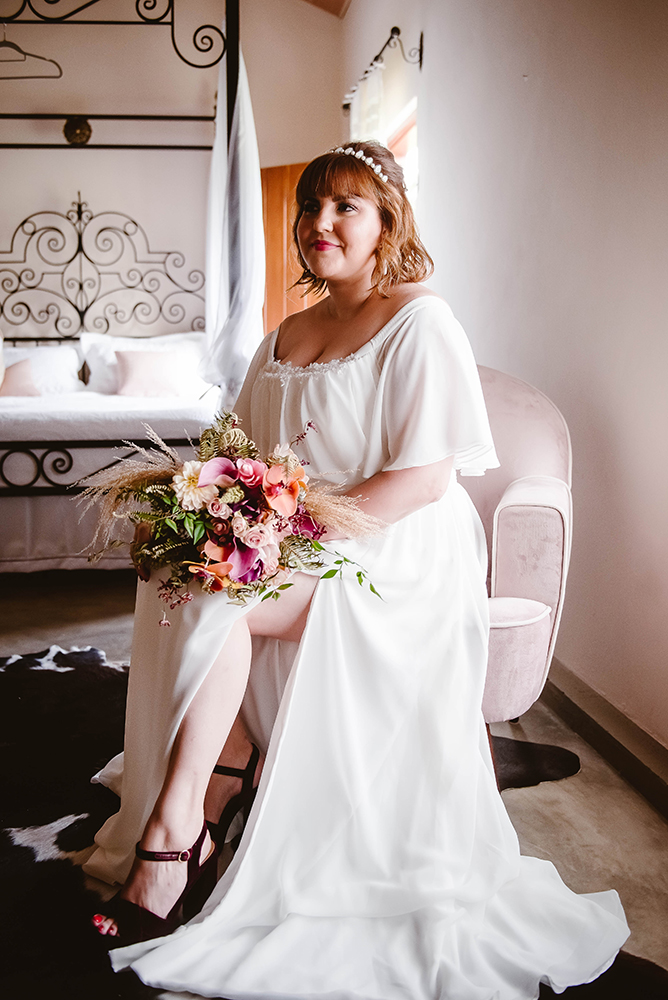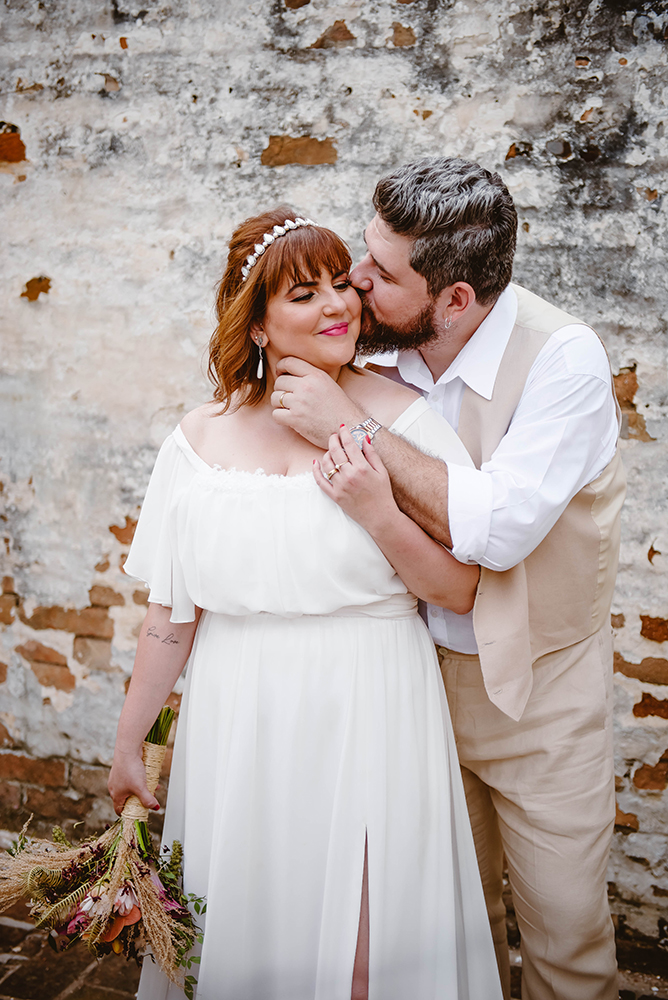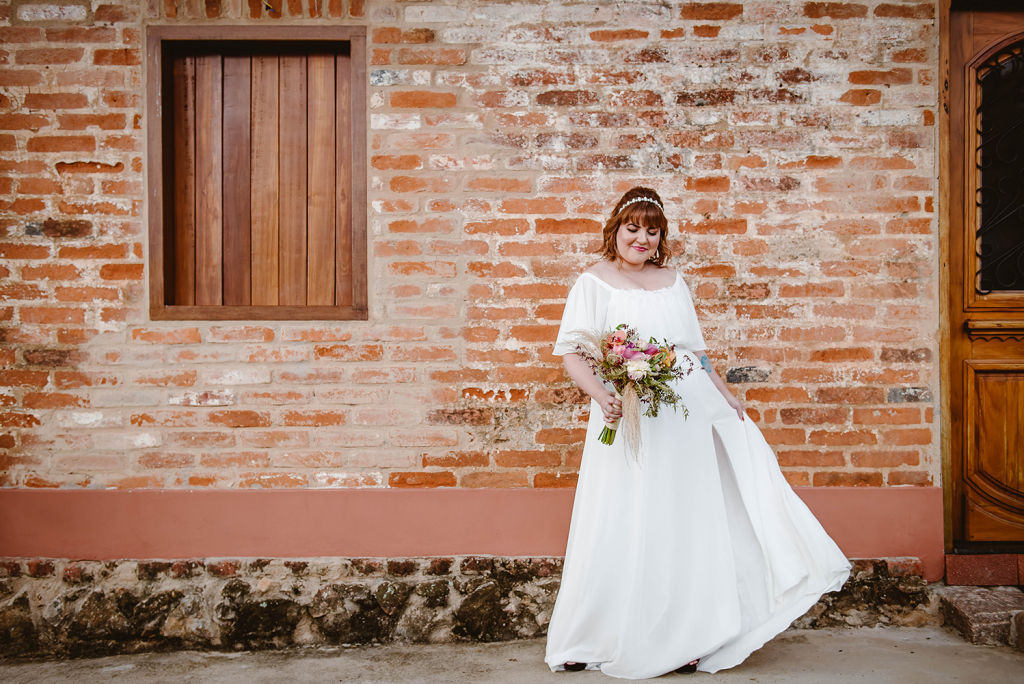 O vestido – essa belezura esvoaçante – é da Julia Pak, os acessórios são da Alessandra Cazzaro, o buquê boho é da Lamore e sapato é… Converse!