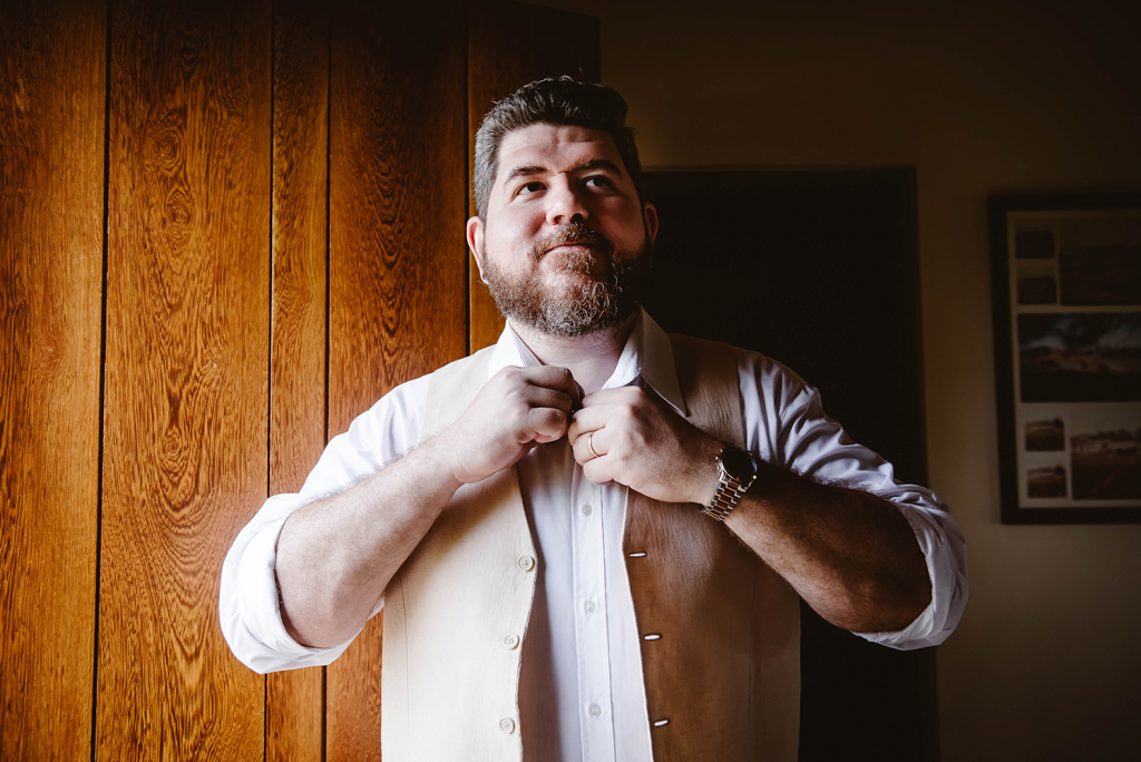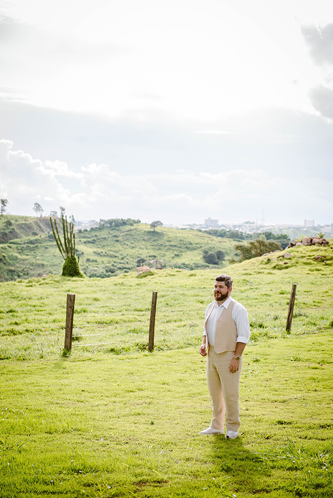 O traje do Ivan é do Maximus Rigor, que tem um bocado de opções para noivos e padrinhos. Ficou perfeito para o clima descontraído da fazenda!