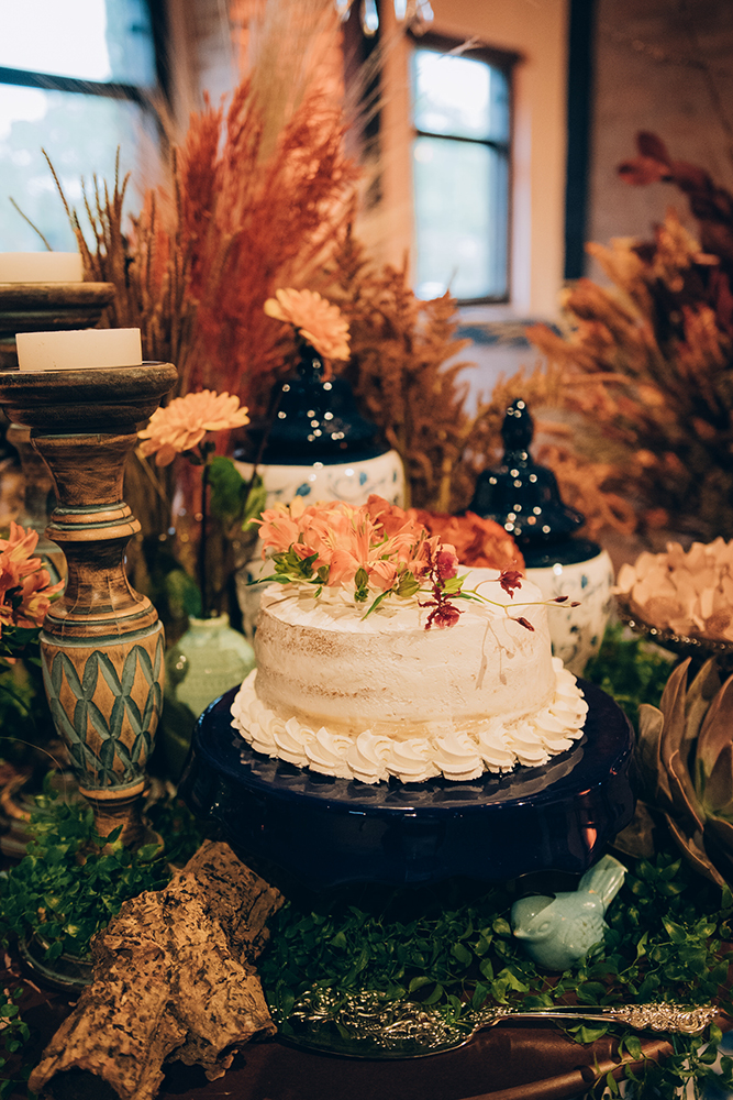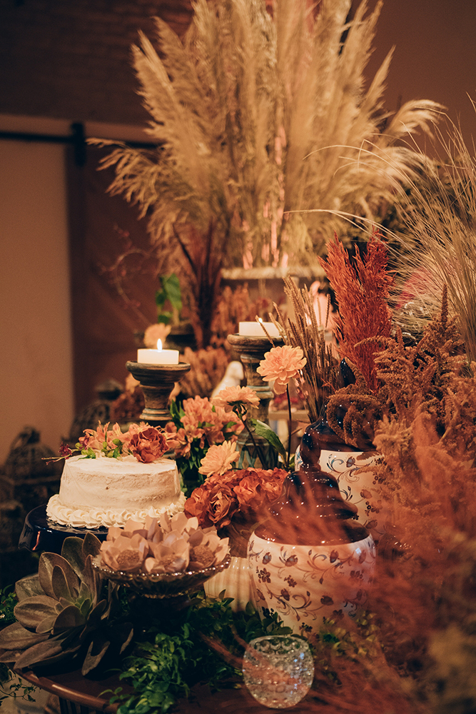 ♥ A decoração. O misto de rústico e elegante rendeu uma mesa de doces perfeita, sob medida para o mini wedding na Fazenda Embaúva.
