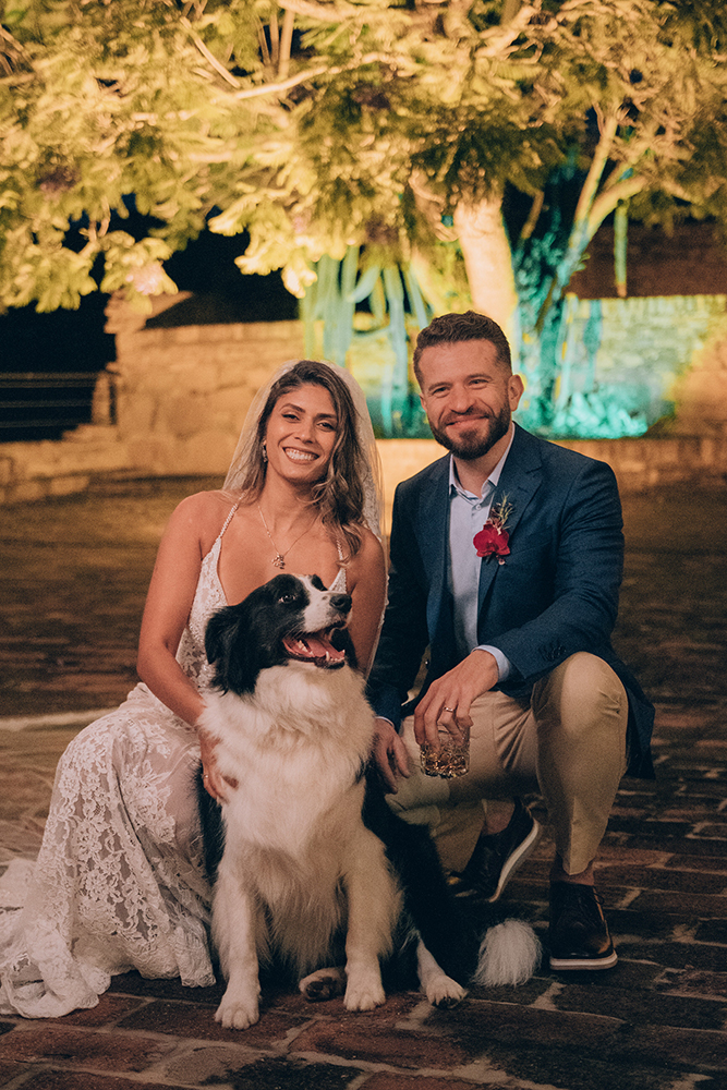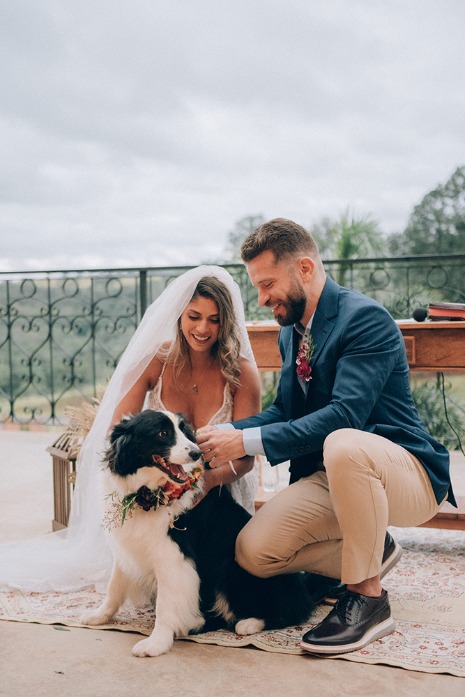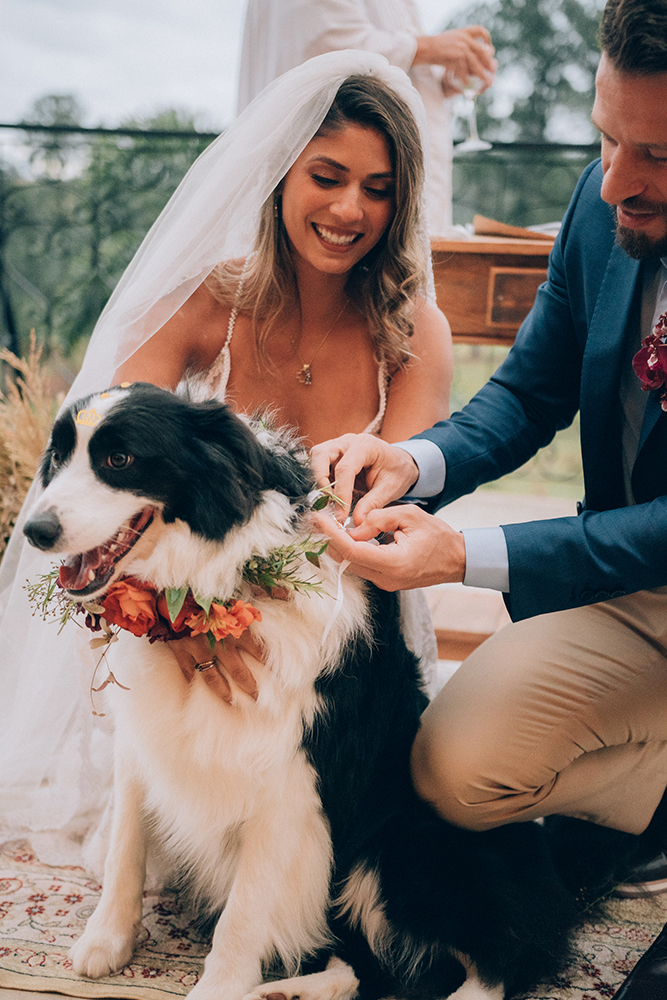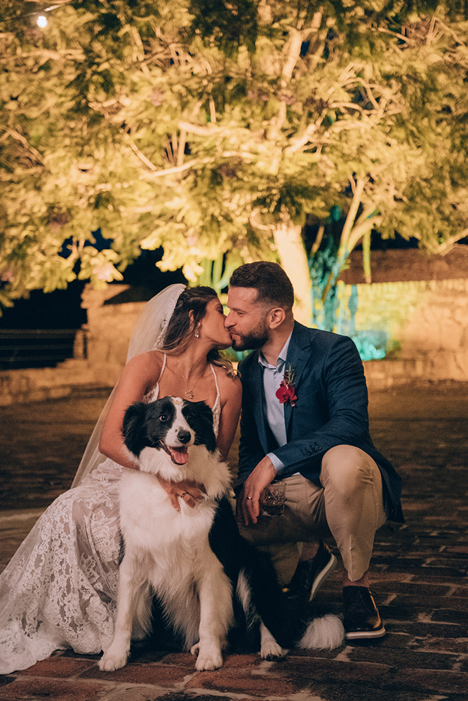 Organizado em um mês e meio, incluiu tudo o que gostamos de ver por aqui: noivo apaixonado, noiva deslumbrante, decoração alegre e até uma daminha de quatro patas, a Mel.