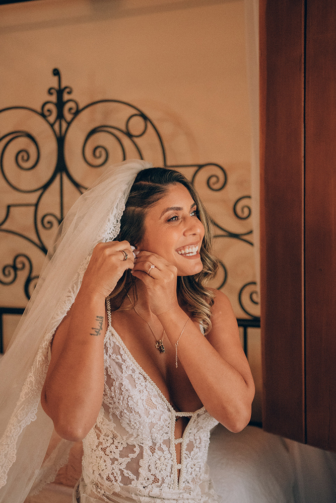 Ficou lindo na Jordana e compôs super bem com o penteado meio preso e véu longo. Ela ficou linda!