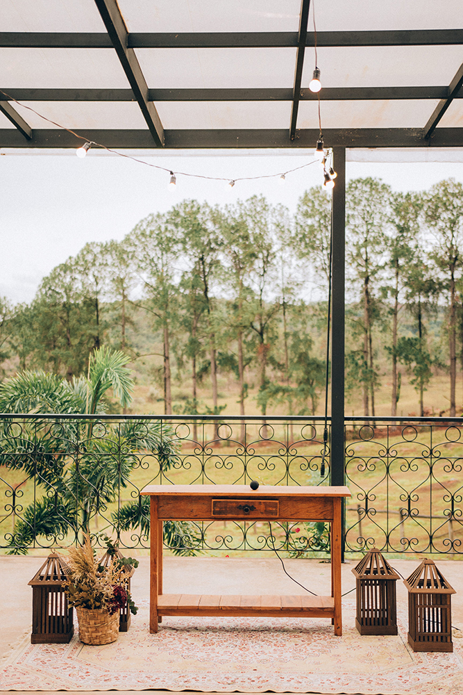 Outro plus foi o chalé do noivo e da noiva, que permitiu aos noivos desfrutar do espaço e curtir cada segundo desde os preparativos.