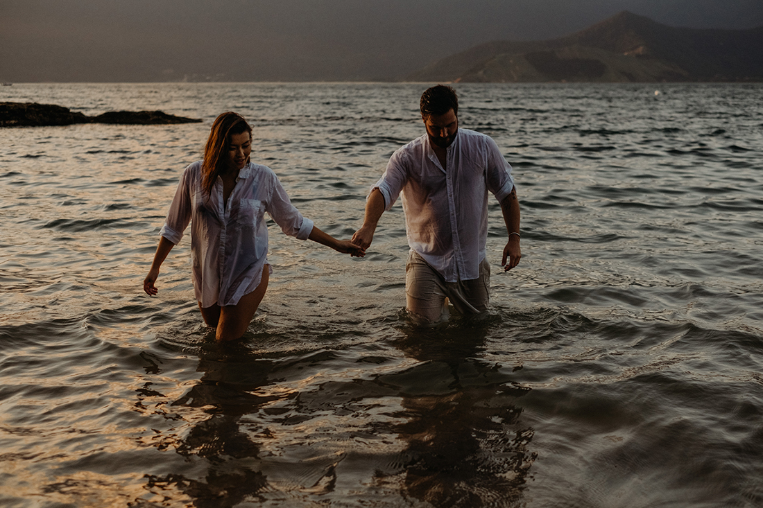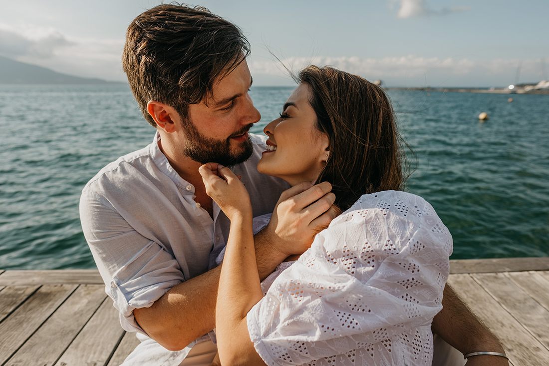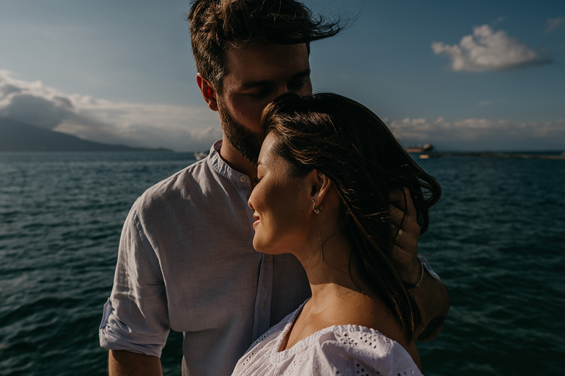 Em casa, naquele lugar especial da sua cidade ou na Ilha, como é o caso, o importante é que o ensaio siga o estilo dos noivos.