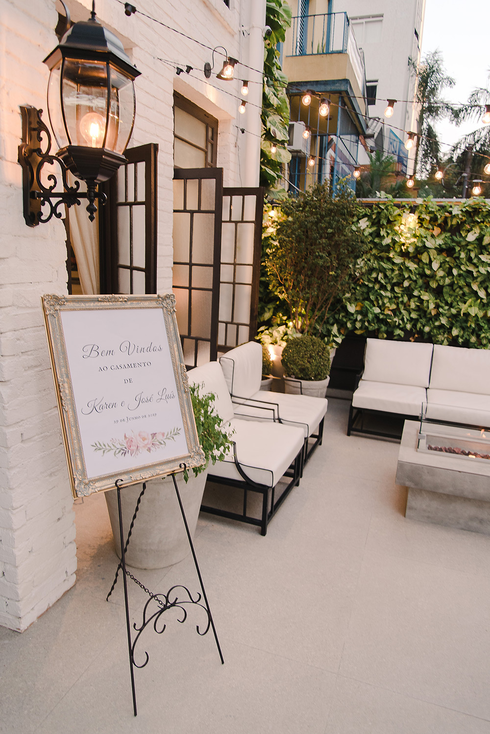 Da fachada com cara de capela aos tijolinhos brancos e lustres de cristal, cada item do Chalé foi pensado com carinho para receber verdadeiros contos de fadas modernos, exatamente o perfil da Karen e do José!