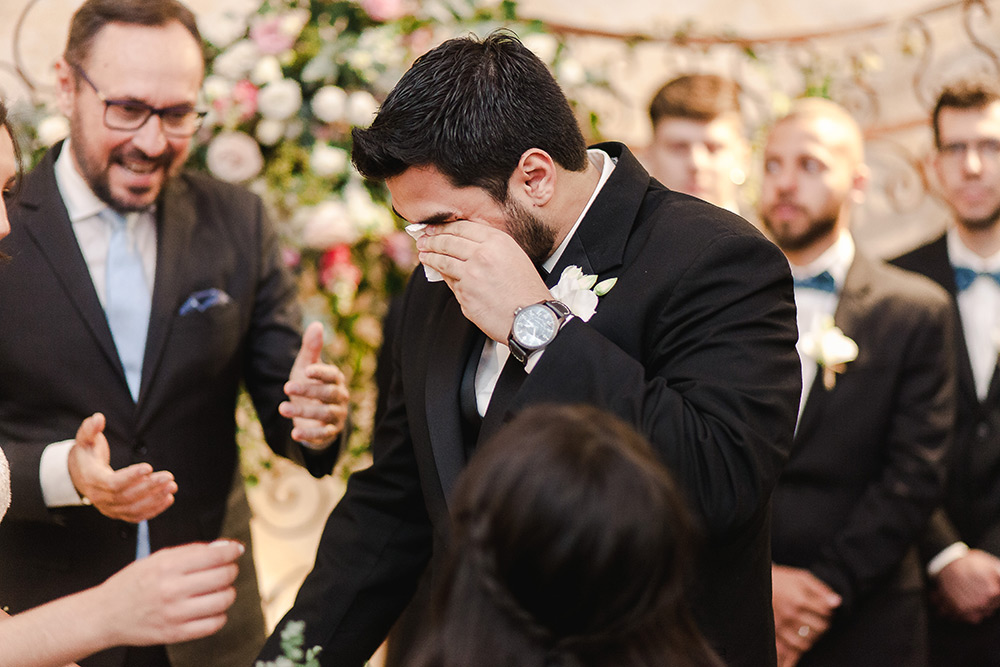 Uma das coisas mais especiais que o espaço proporciona é a sala da noiva com visão privilegiada para a cerimônia. A Karen conseguiu assistir a entrada do noivo e até dos padrinhos, que tiveram I’ll Be There for You (Friends) como trilha sonora. Olha só que amor!