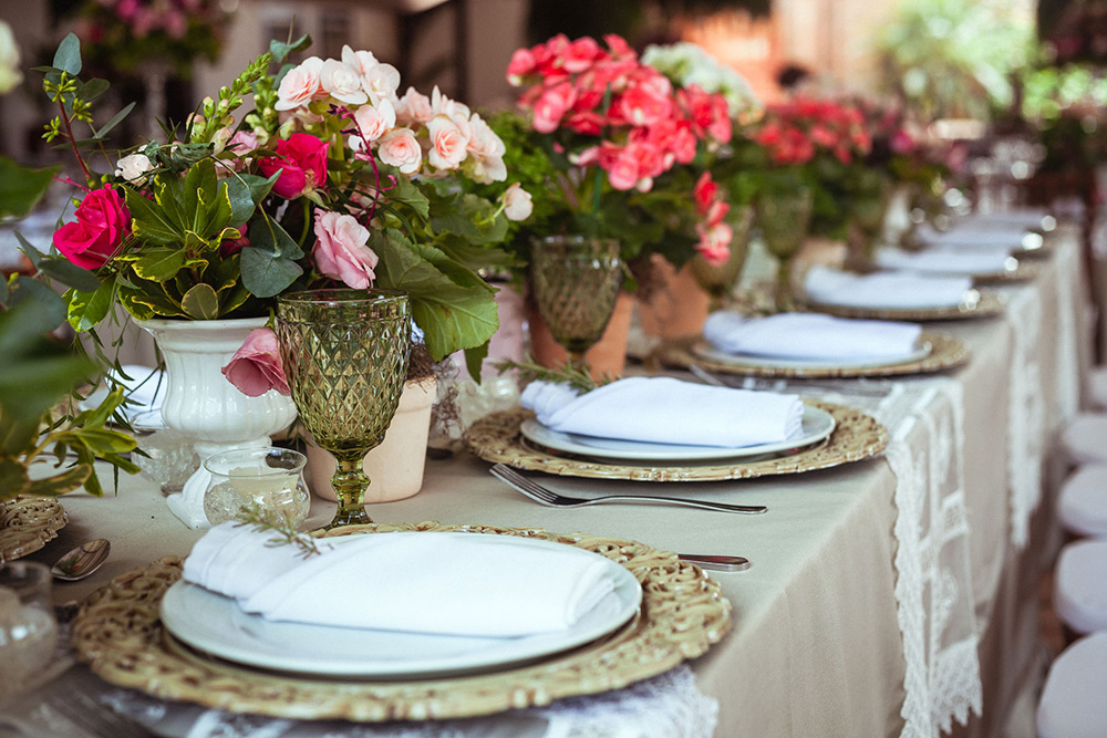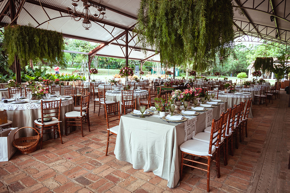 Um dia apareceu para mim no Facebook um local, em Holambra, e parecia um jardim. Achamos incrível e decidimos que investiríamos no estilo mais boho chic, com pegada rústica.