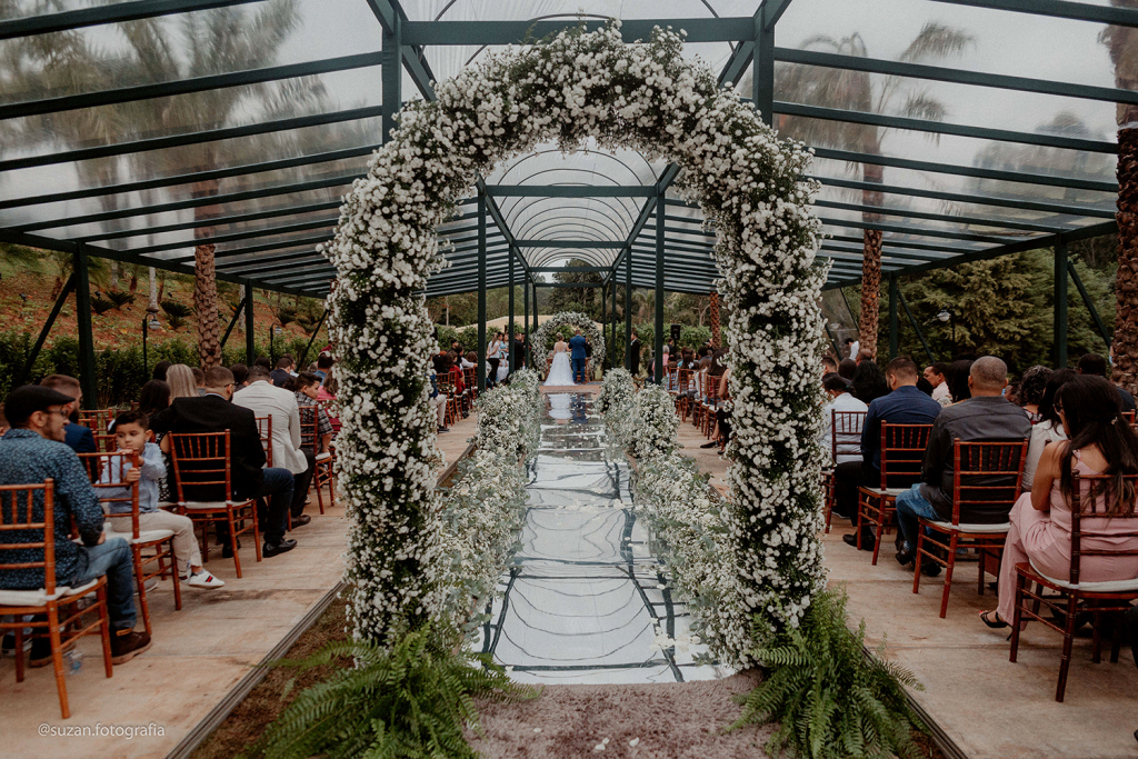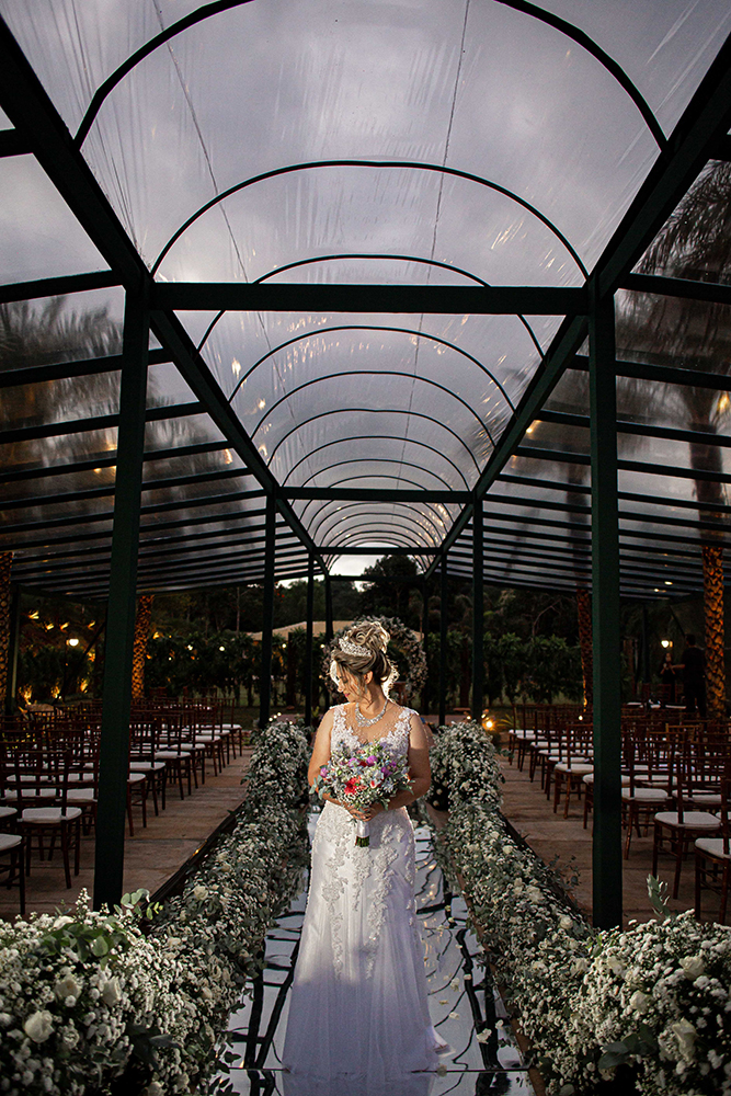 Em resumo, os noivos trocaram votos em um espaço que planejaram, idealizaram e construíram. Portanto, emoção em dobro!