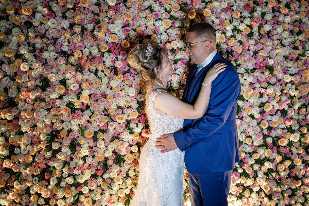 A história dos dois começou há 15 anos. A princípio, trocaram alianças no civil, oficializando a relação e celebrando com simplicidade. A data reuniu apenas os pais e padrinhos.