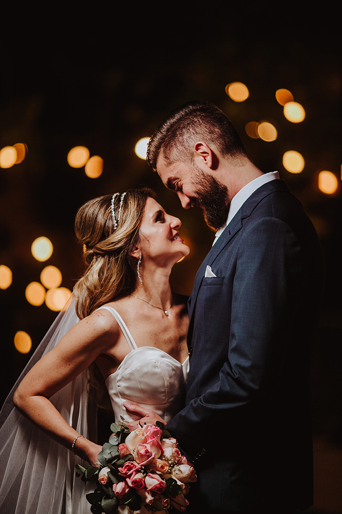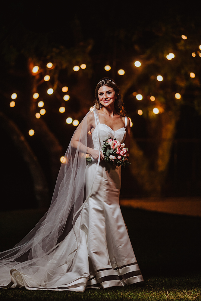 Reparem que, apesar do clima boho da festa, a noiva seguiu outro padrão para o look, o que não a fez destoar da celebração.