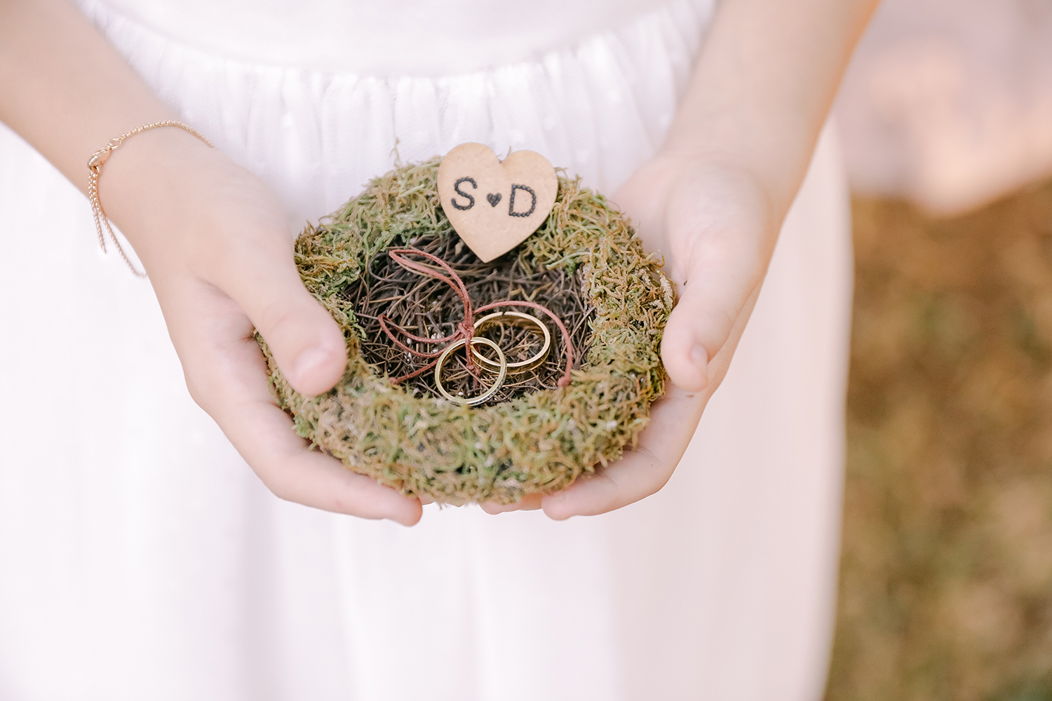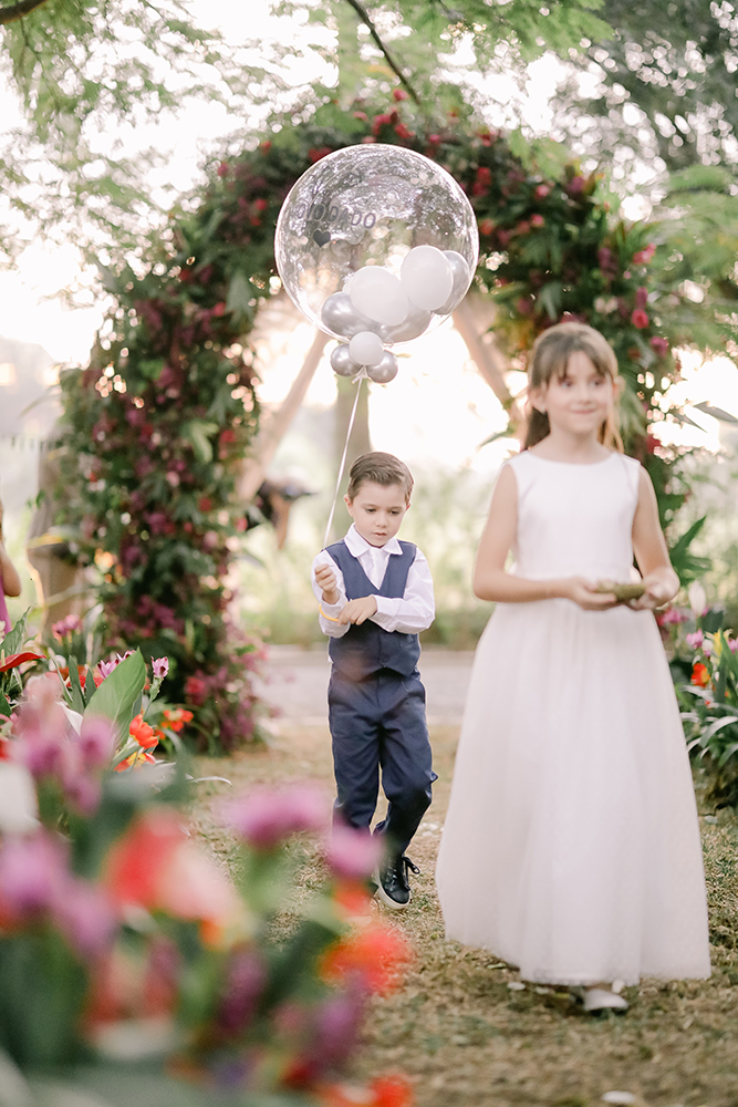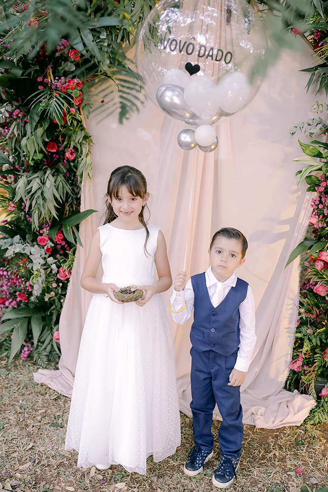 O local da cerimônia, especial de uma maneira única (Fazenda Capela do Bosque), e a presença dos meus filhos, levando as alianças.