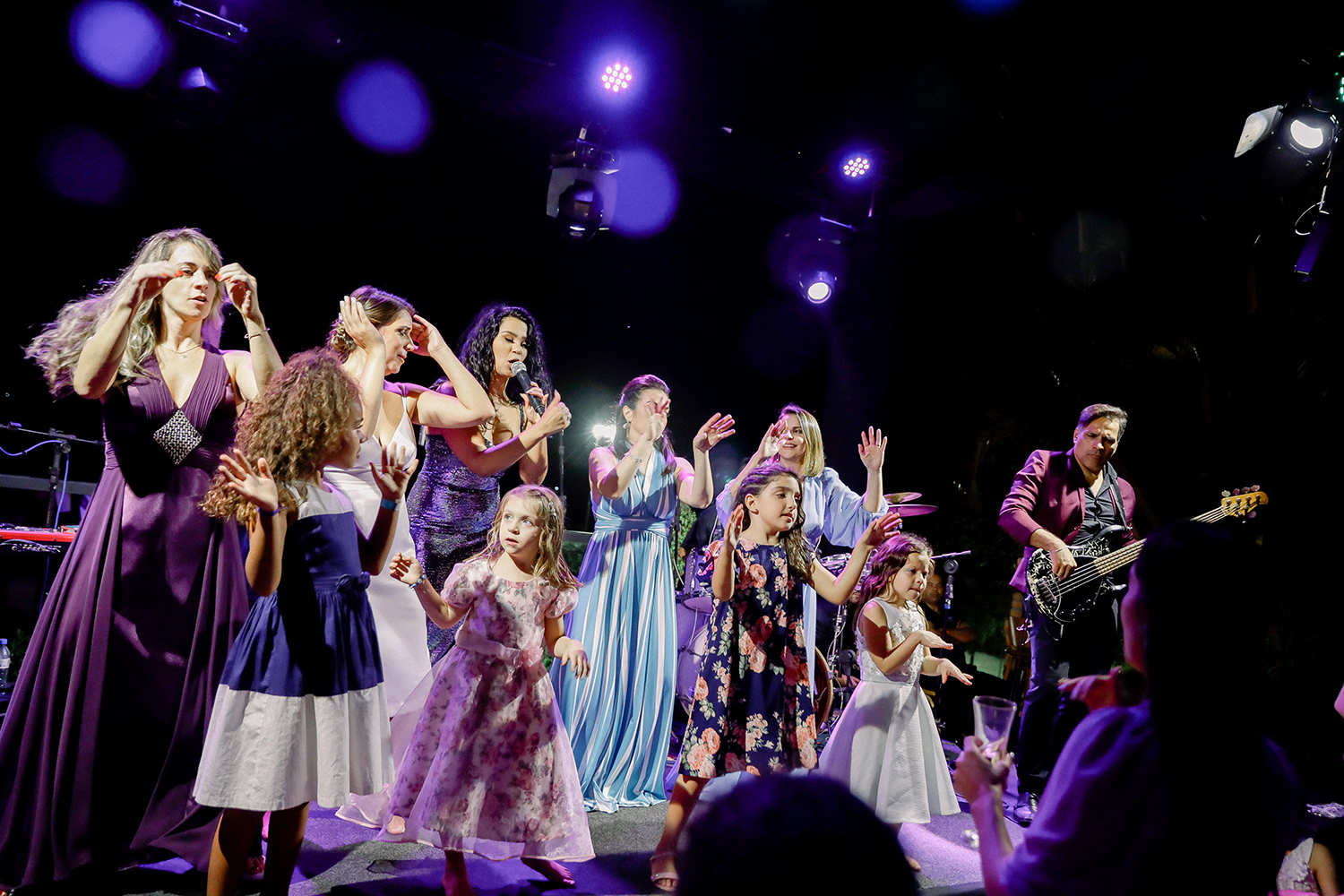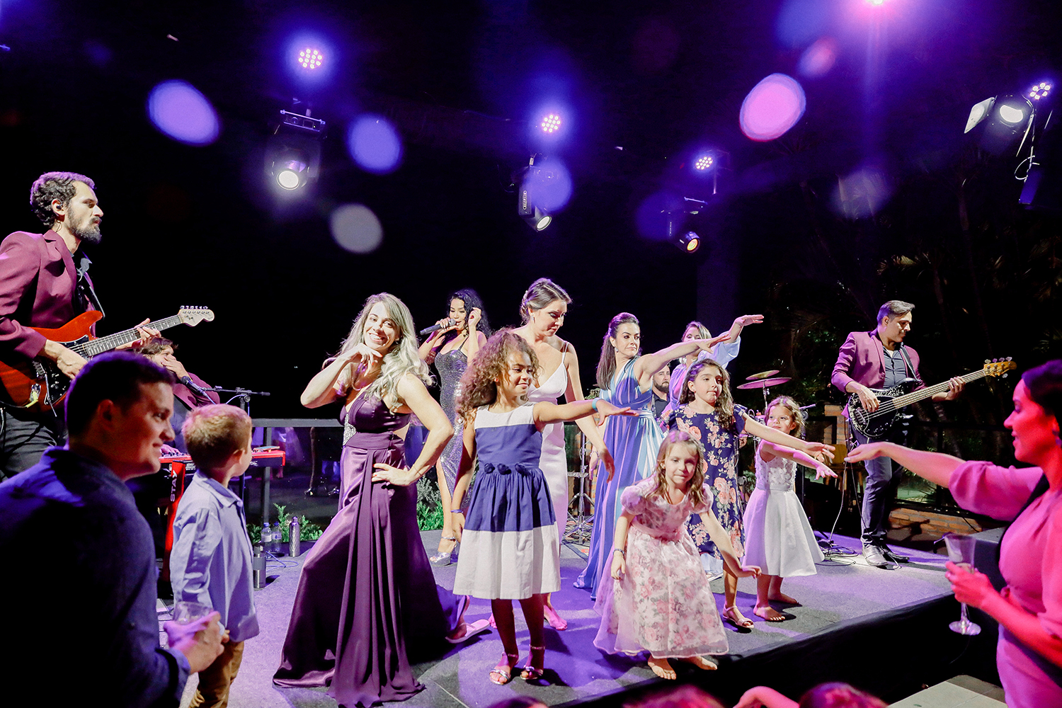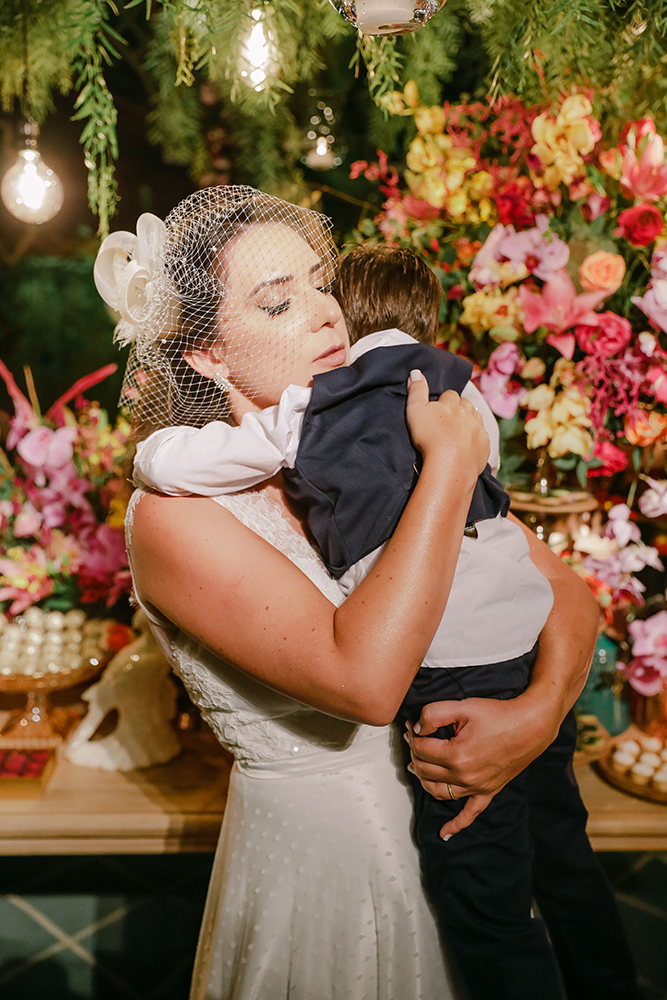 A decisão do casamento veio após três anos de namoro, quando já morávamos juntos e decidimos oficializar. Fizemos a cerimônia civil no ano de 2011 e, a festa, após cerca de 10 anos, como uma renovação dos votos e com a presença dos nossos dois filhos.