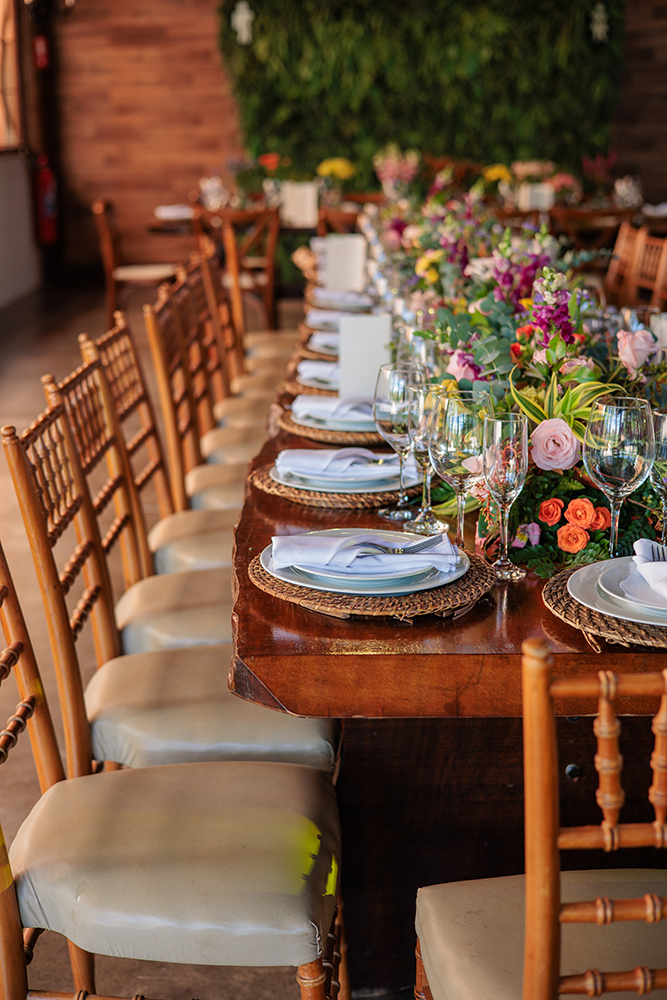 No início era para ser uma cerimônia mais intimista, mas casei com um geminiano expansivo, então, de uma festa mais simples e menor, fomos para uma festa com tudo que tivemos vontade. Eu tentei controlar os gastos e manter o orçamento, mas não consegui. Dessa forma, dobramos o budget inicial.