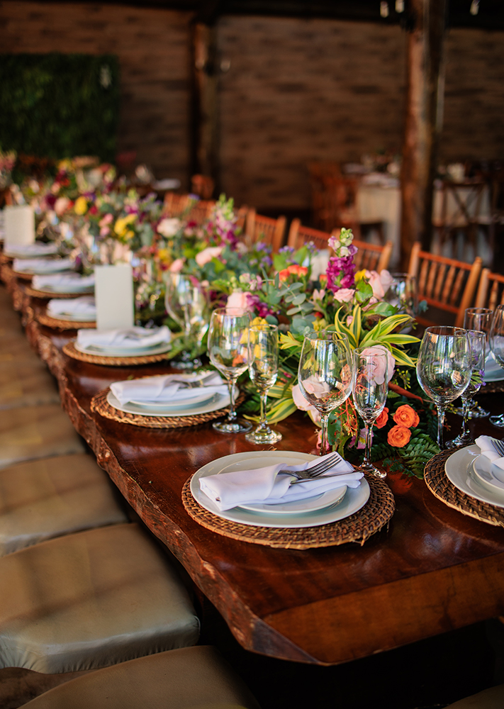 O primeiro serviço contratado foi o buffet, pois queríamos ilhas e uma apresentação bem legal. E também já sabíamos que queríamos que fosse numa fazenda, aí começamos a busca.