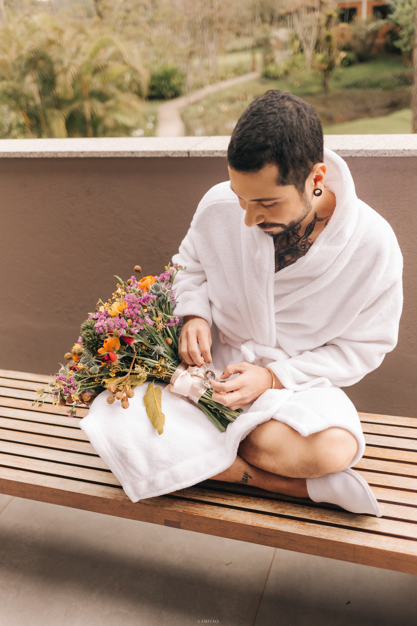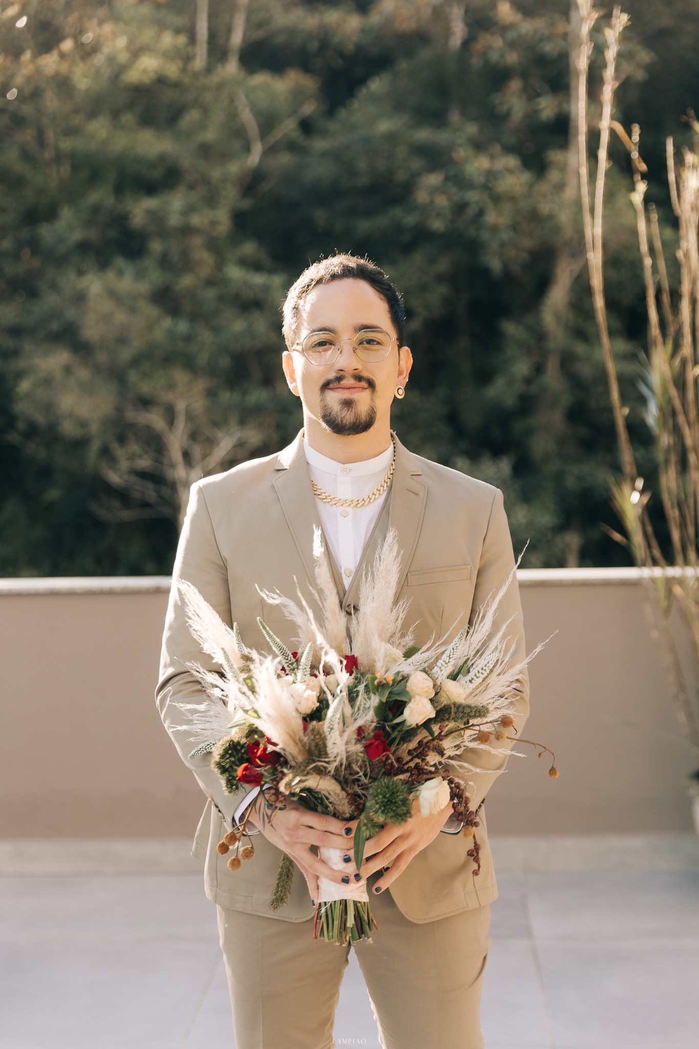 A maioria dos lugares que procurávamos era com a opção de todos os detalhes inclusos, mas sempre tinha algo que não nos agradava e isso foi nos desanimando. Parecia que não era possível ter o casamento dos sonhos, ou que estávamos sonhando algo que não existia. Foi então que conhecemos as meninas do Moças Casamenteiras e posso dizer que foi a melhor coisa que nos aconteceu. A partir de então, tudo que queríamos era atendido. Acabamos criando uma amizade com elas e fizemos um grupo chamado Galera do Mato, afinal, se tem uma pessoa que ama natureza, é o Bruno. Tanto que ele fez questão de envolver flores/folhagens em tudo. Literalmente tudo!