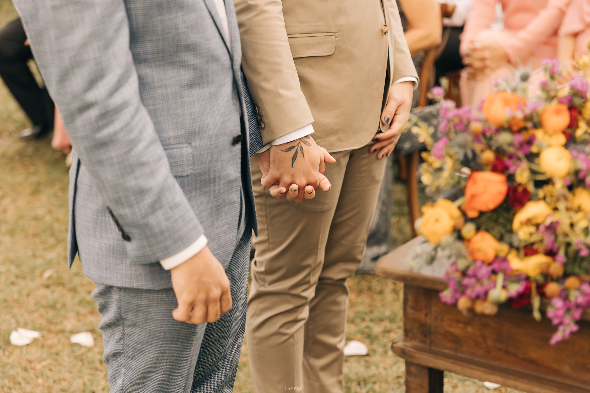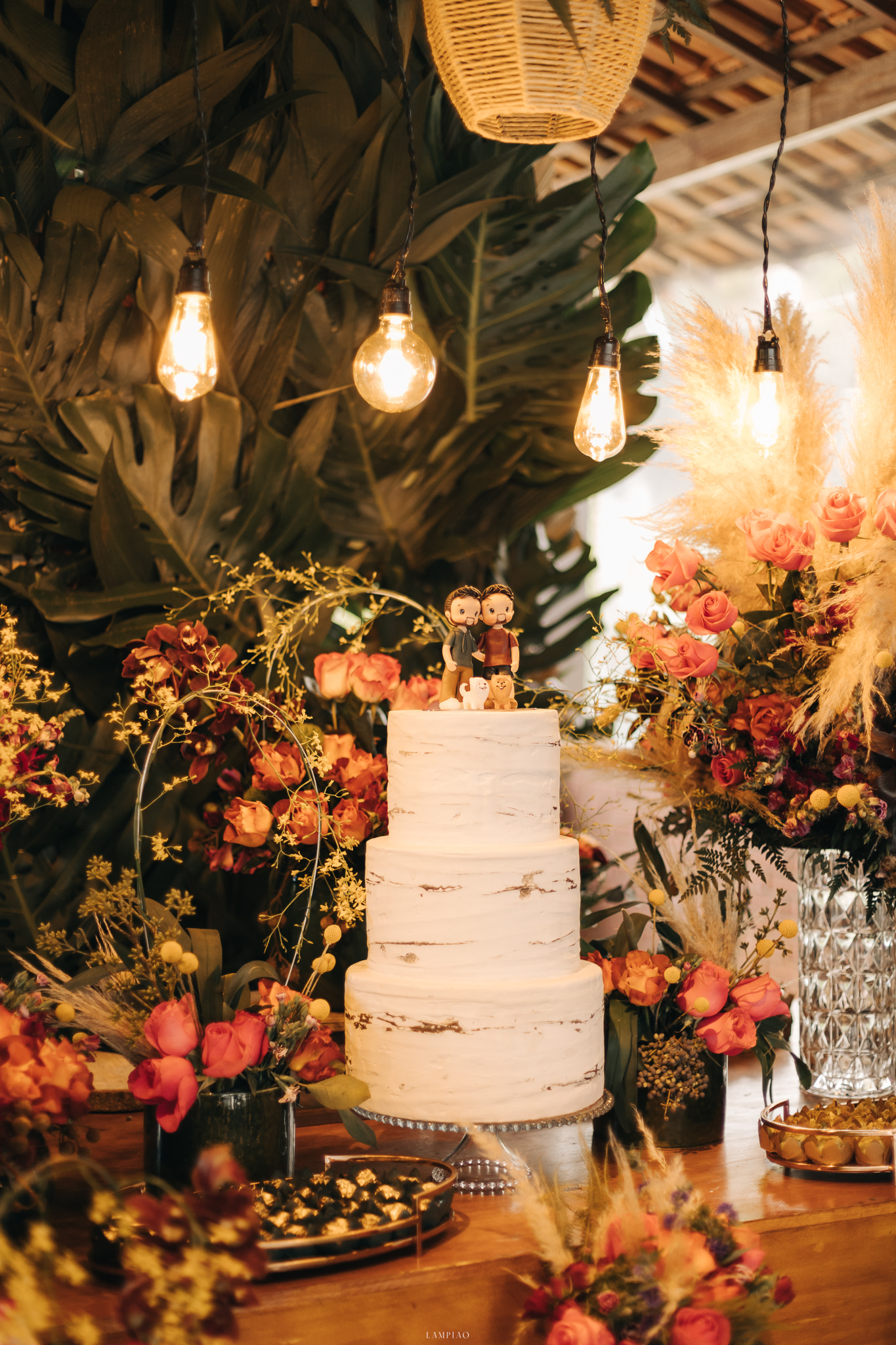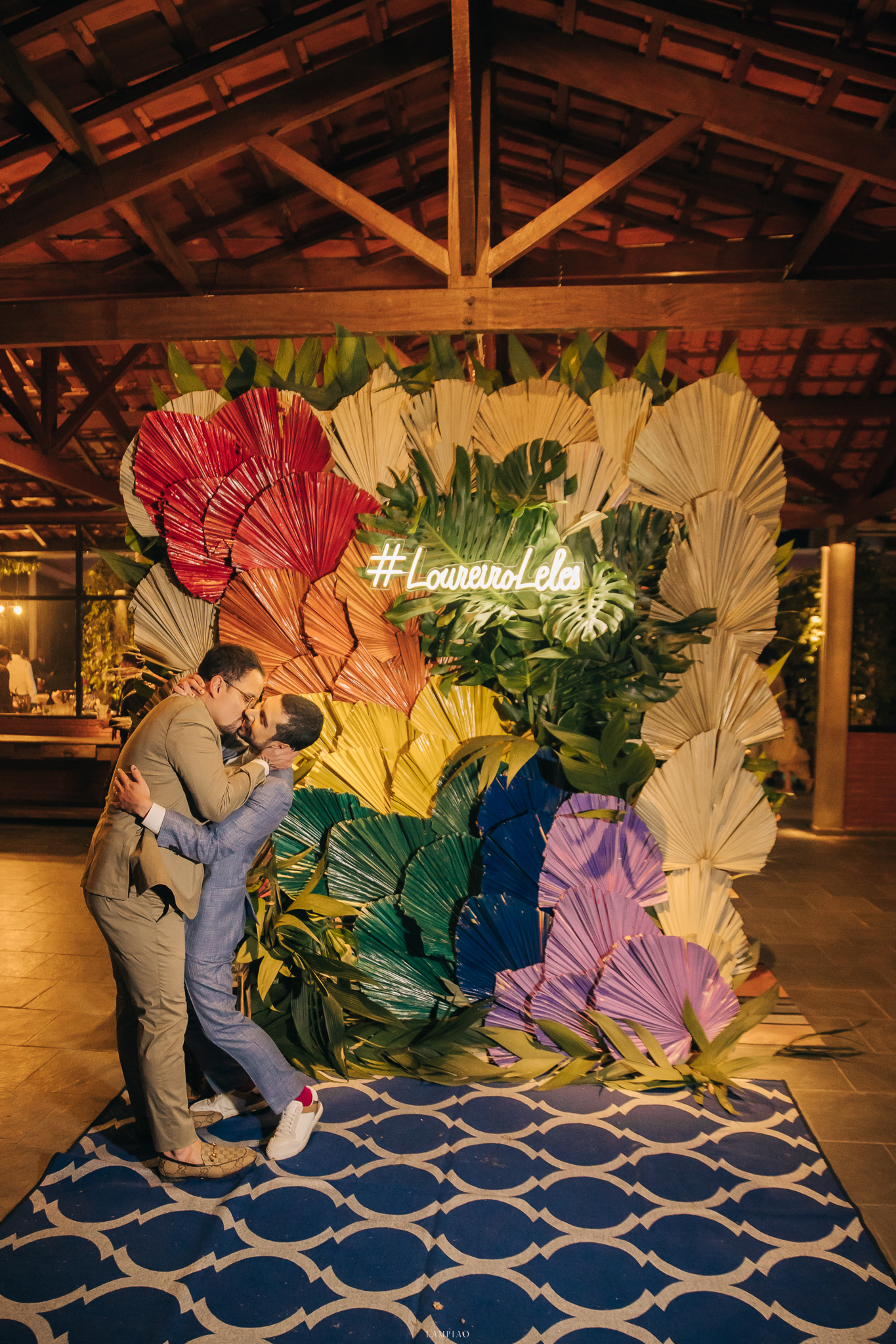 Para concluir, nós não temos um fornecedor para reclamar, mas eu quero deixar meu agradecimento ESPECIAL para a Sara do StudioTheCor, para Alinne da Lampião Fotografias e para Henrique do No3 Vídeos. A Sara fez com que a decoração estivesse impecável. Ao chegarmos no local choramos igual crianças vendo a transformação que ela fez no espaço. A bandeira LGBTQIAP+ em folhagens na entrada. Sara me acolheu quando a nossa antiga decoradora fraudou a empresa faltando dois meses para o casamento e eu serei eternamente grato por isso!