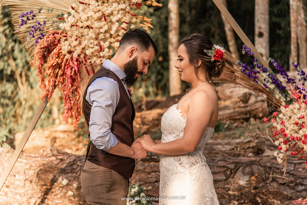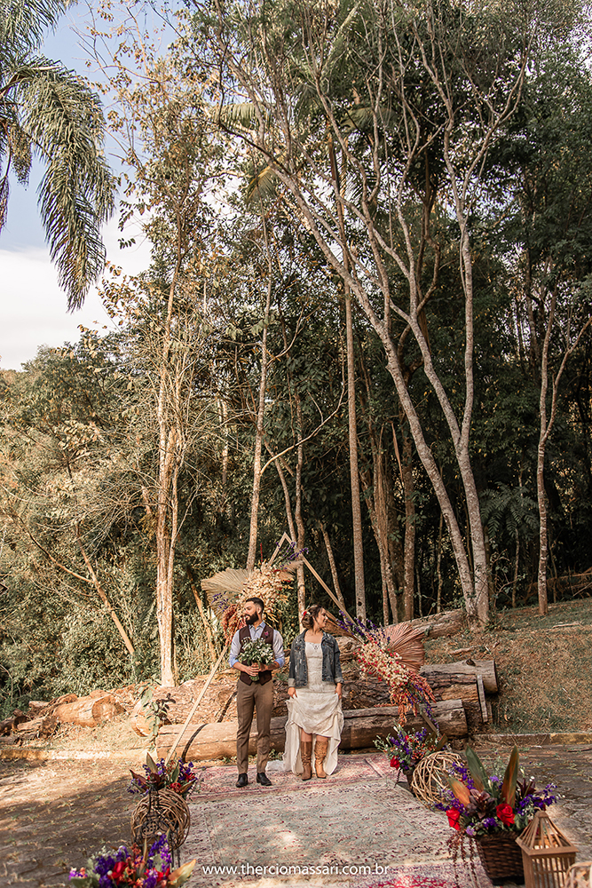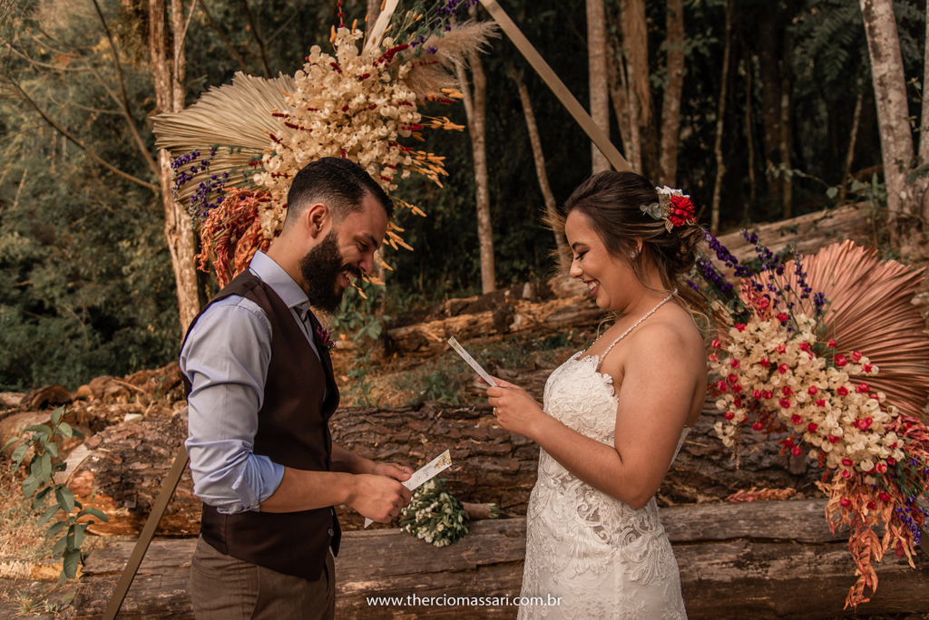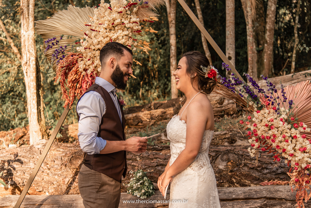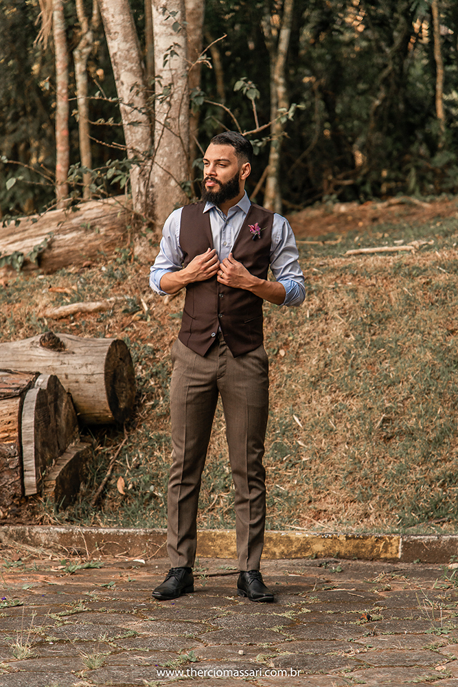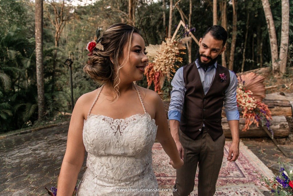Já o noivo trocou a gravata e o paletó pelo colete, dando ênfase ao clima despojado.