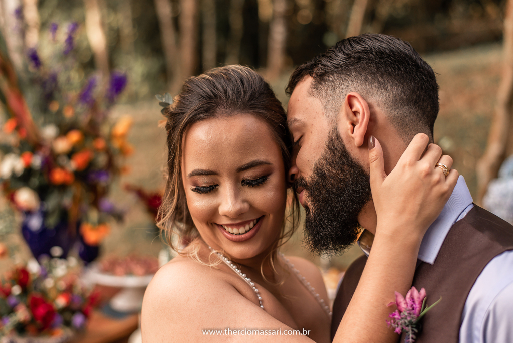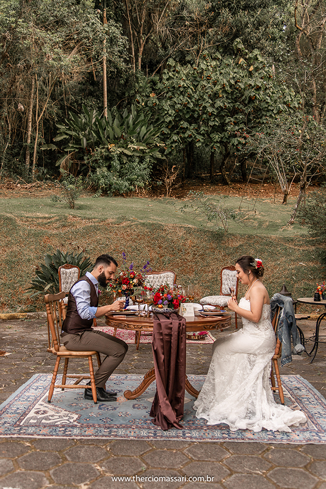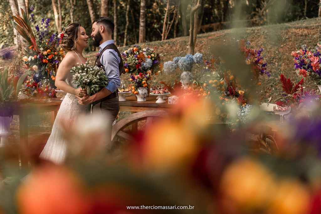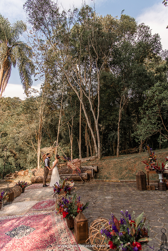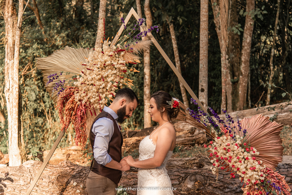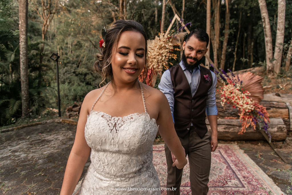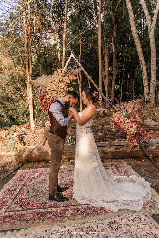 Já o noivo trocou a gravata e o paletó pelo colete, dando ênfase ao clima despojado.