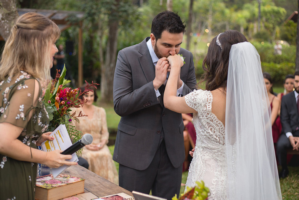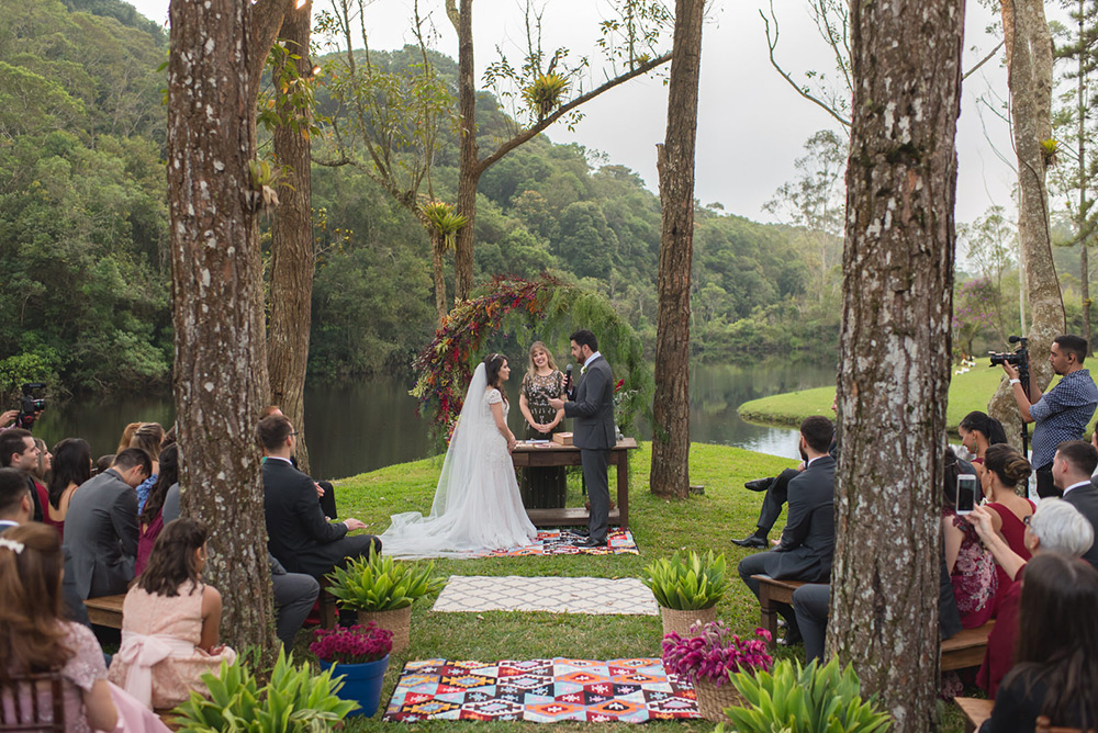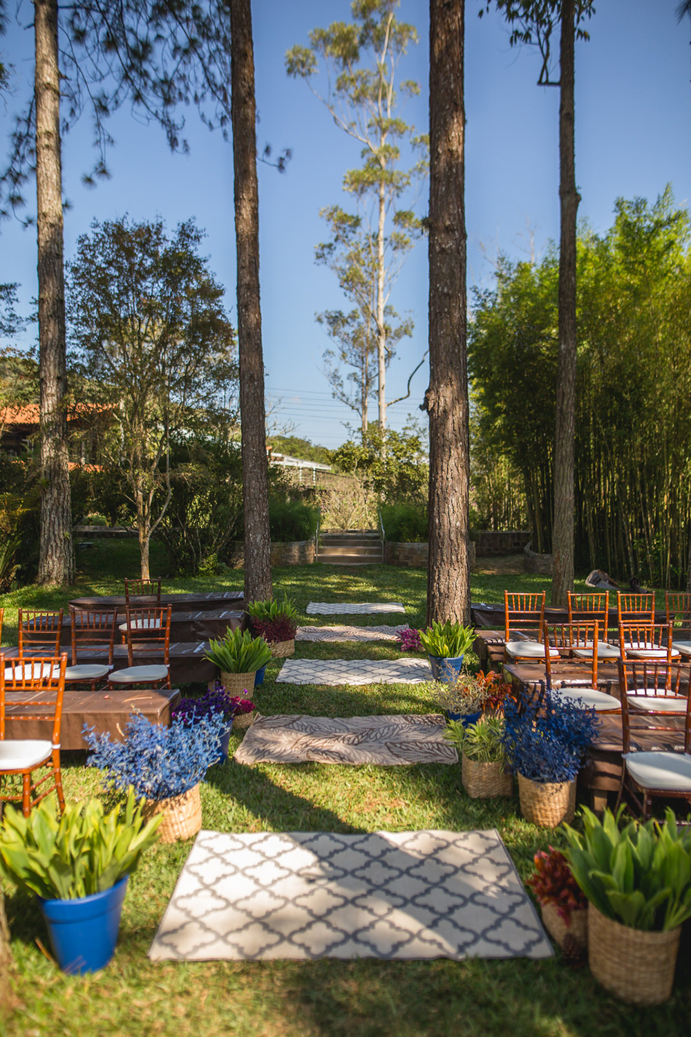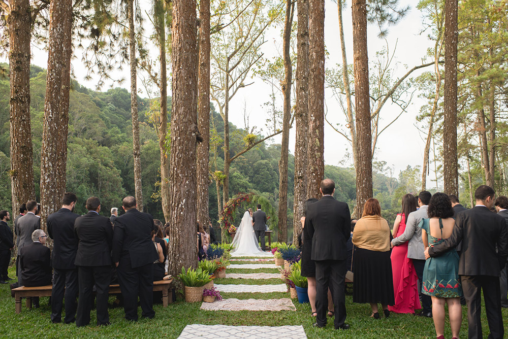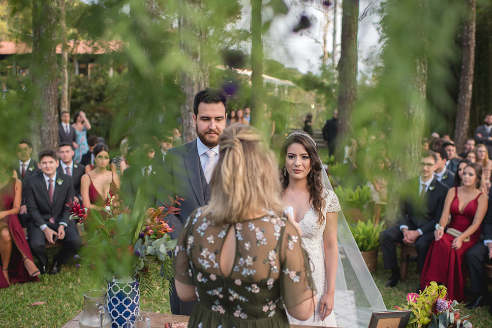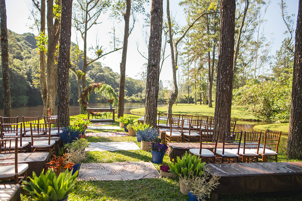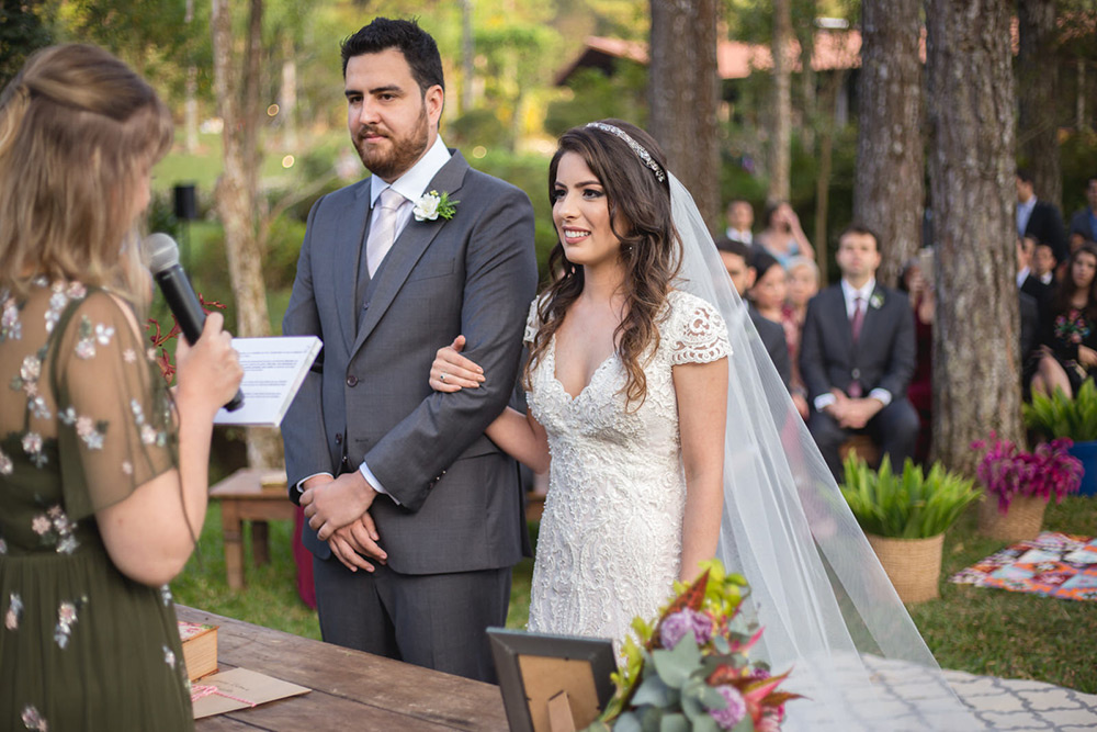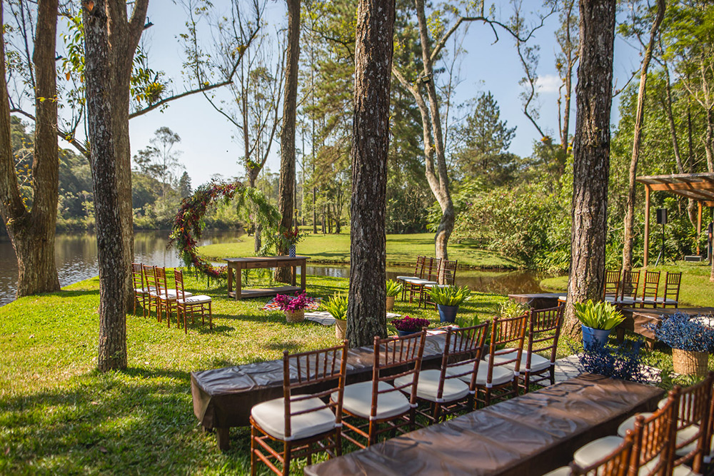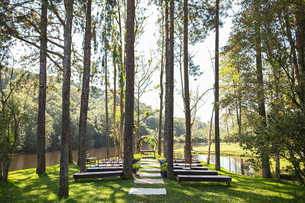 No geral a organização do casamento foi tranquila, porque nos planejamos com antecedência, tínhamos pé no chão com relação ao nosso orçamento e sabíamos muito bem o que queríamos. Não somos tradicionais e nem muito religiosos, então não queríamos algo muito formal, clássico, com padre na igreja e tal. Queríamos um ambiente acolhedor em meio a natureza. A partir de então fomos buscando fornecedores que atendessem as nossas expectativas.