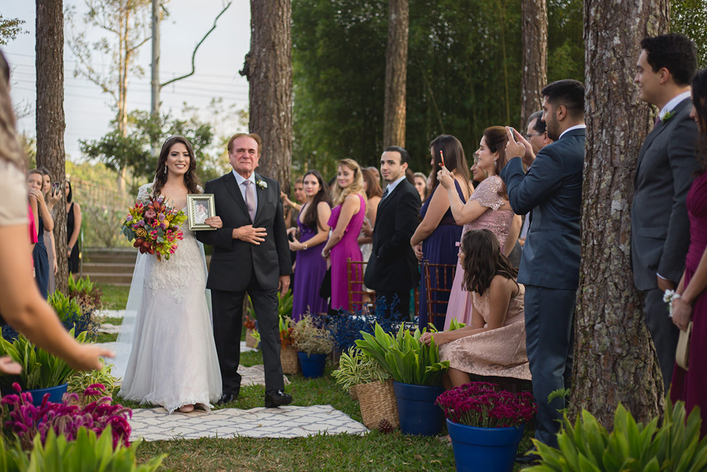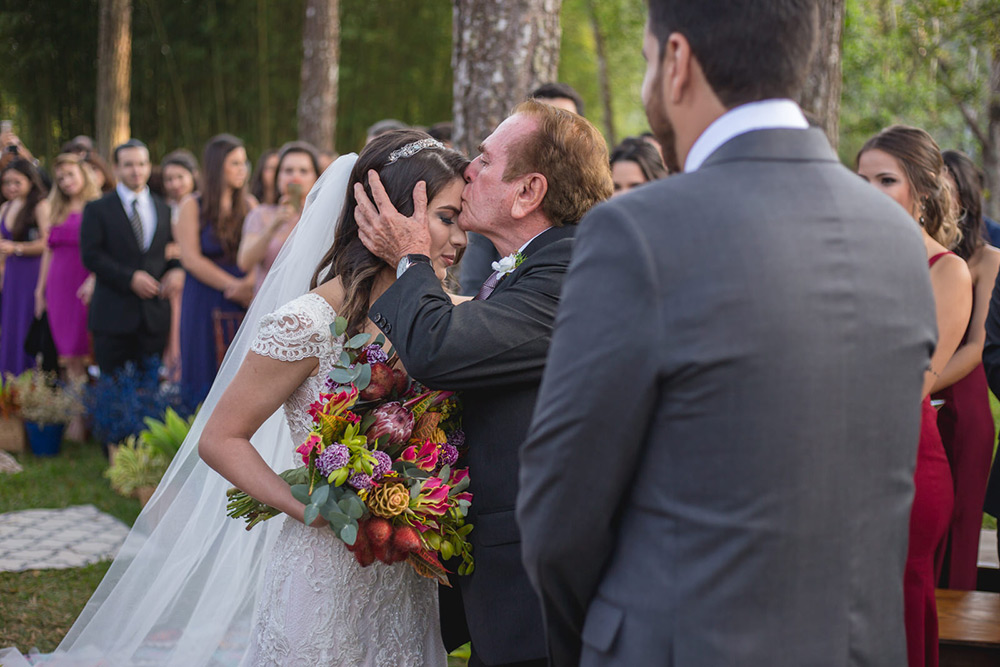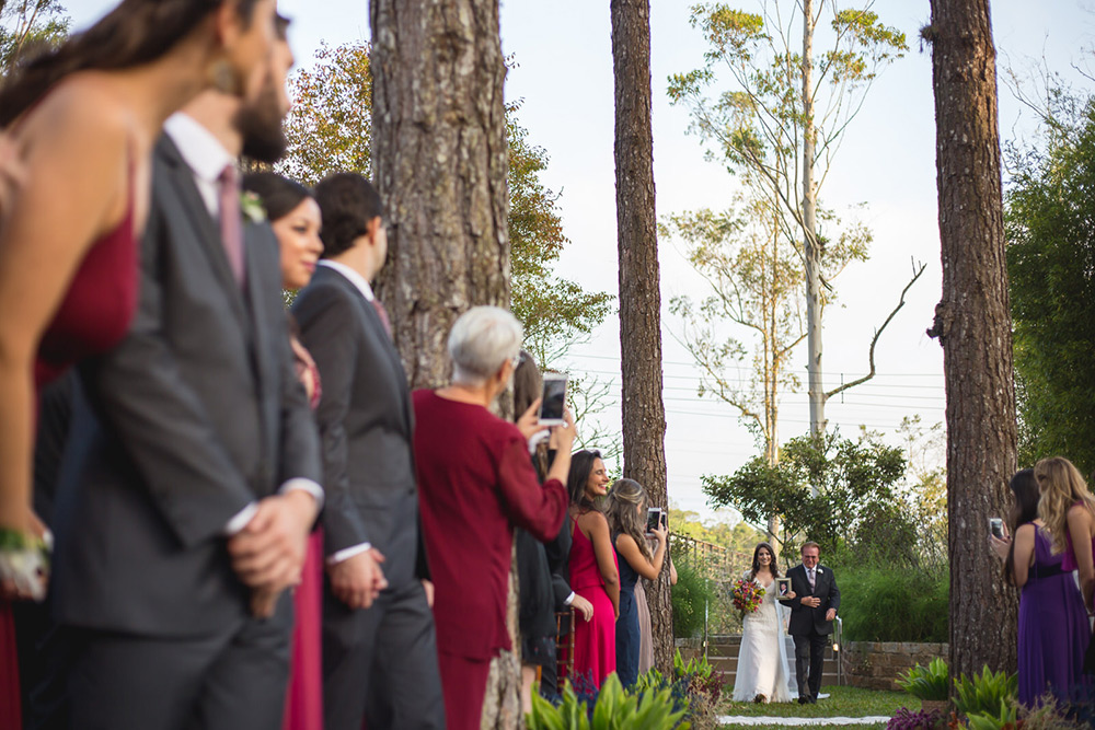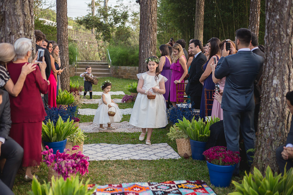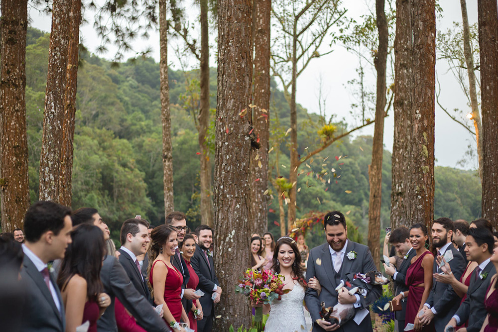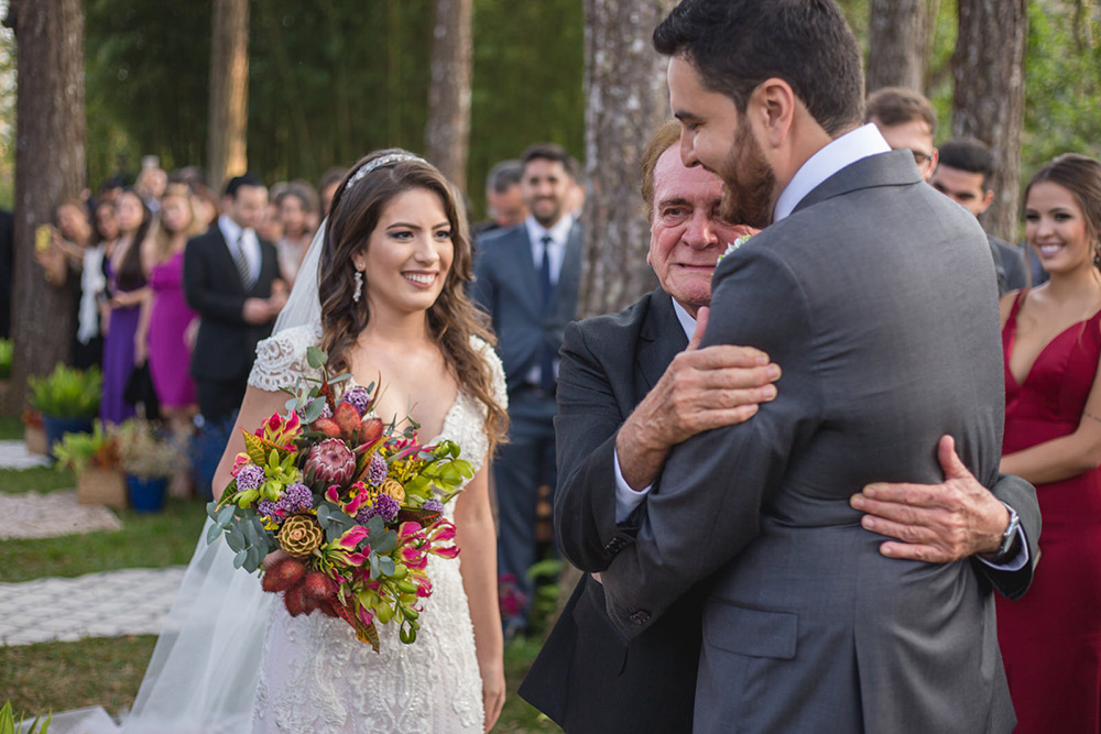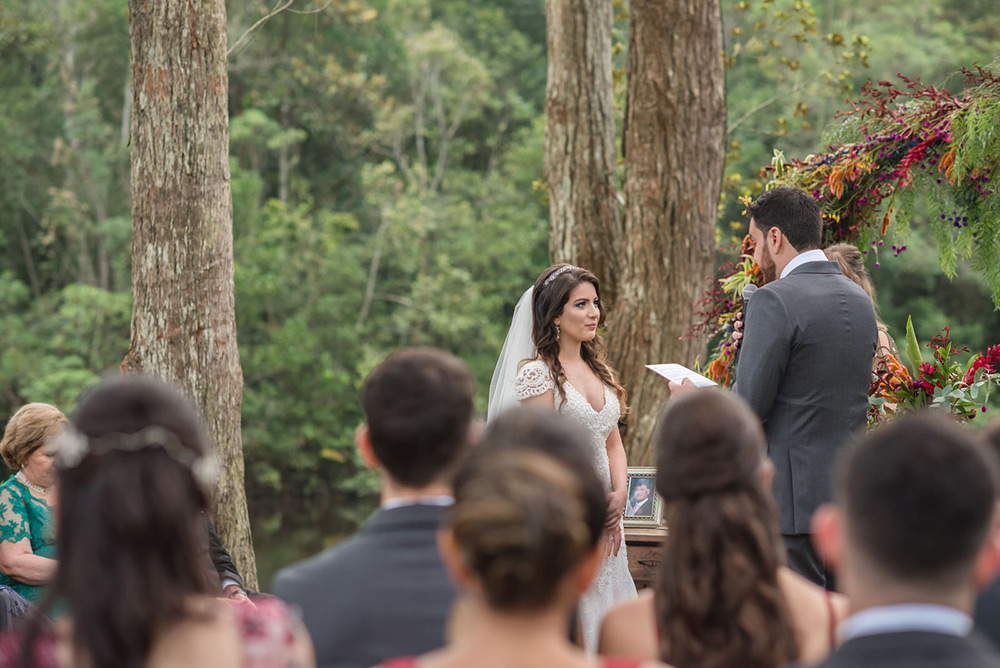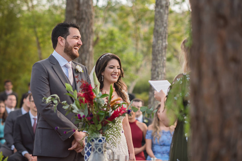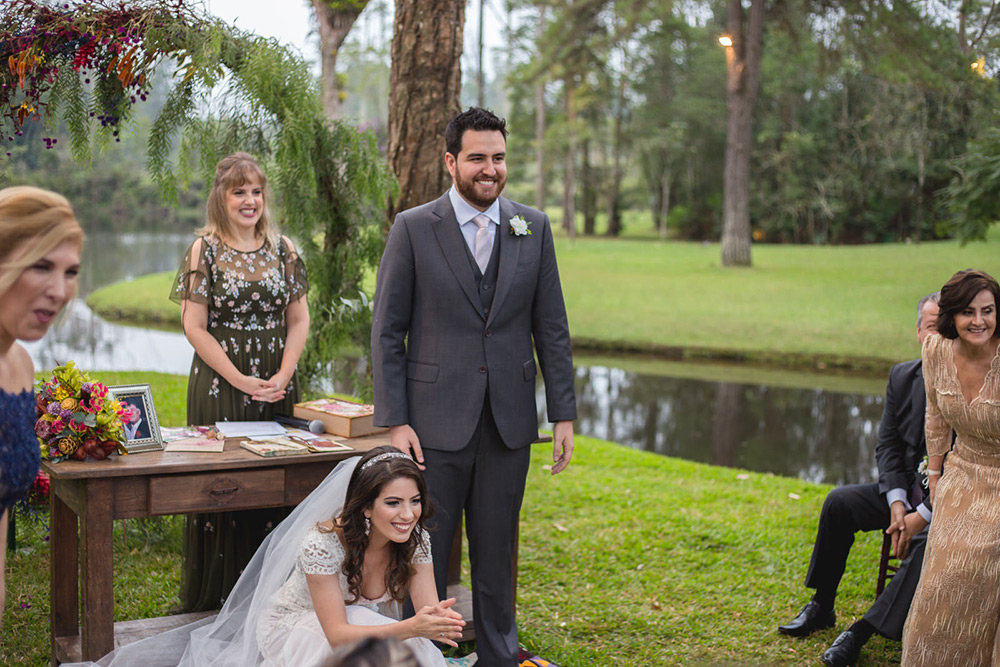 No geral a organização do casamento foi tranquila, porque nos planejamos com antecedência, tínhamos pé no chão com relação ao nosso orçamento e sabíamos muito bem o que queríamos. Não somos tradicionais e nem muito religiosos, então não queríamos algo muito formal, clássico, com padre na igreja e tal. Queríamos um ambiente acolhedor em meio a natureza. A partir de então fomos buscando fornecedores que atendessem as nossas expectativas.