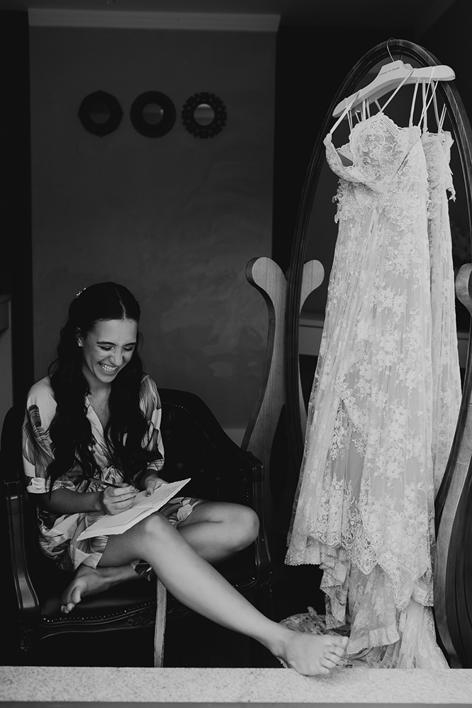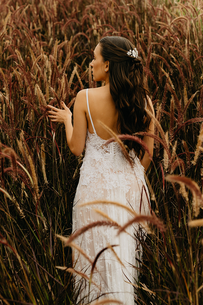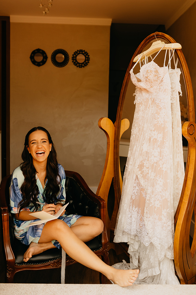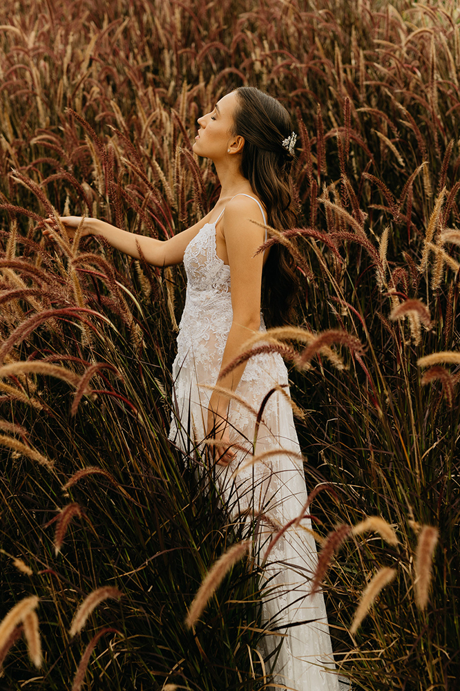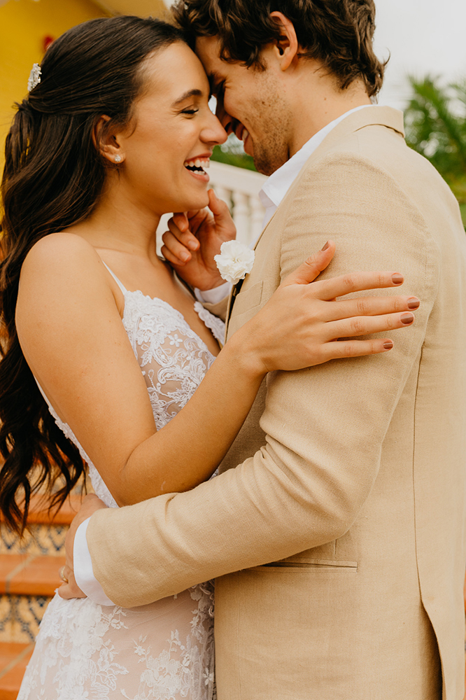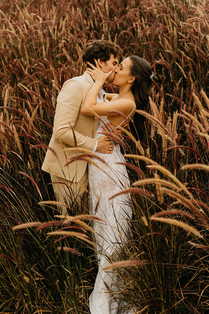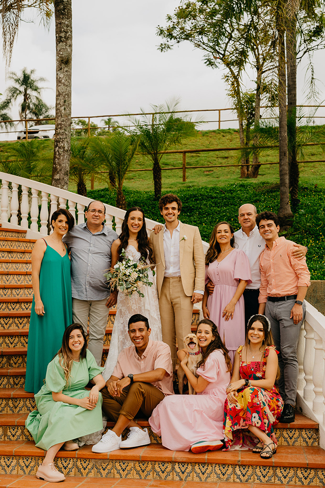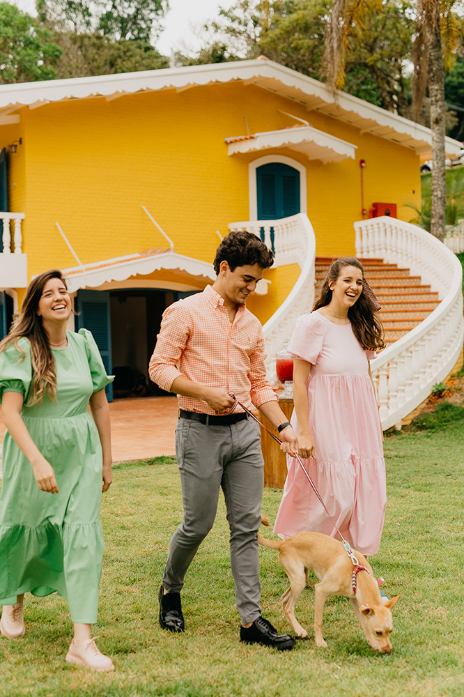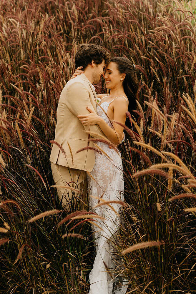 O noivo, por outro lado, adotou o traje em linho assinado por Maximus Rigor. Ambos absolutamente leves, descontraídos e na medida para a celebração no campo.