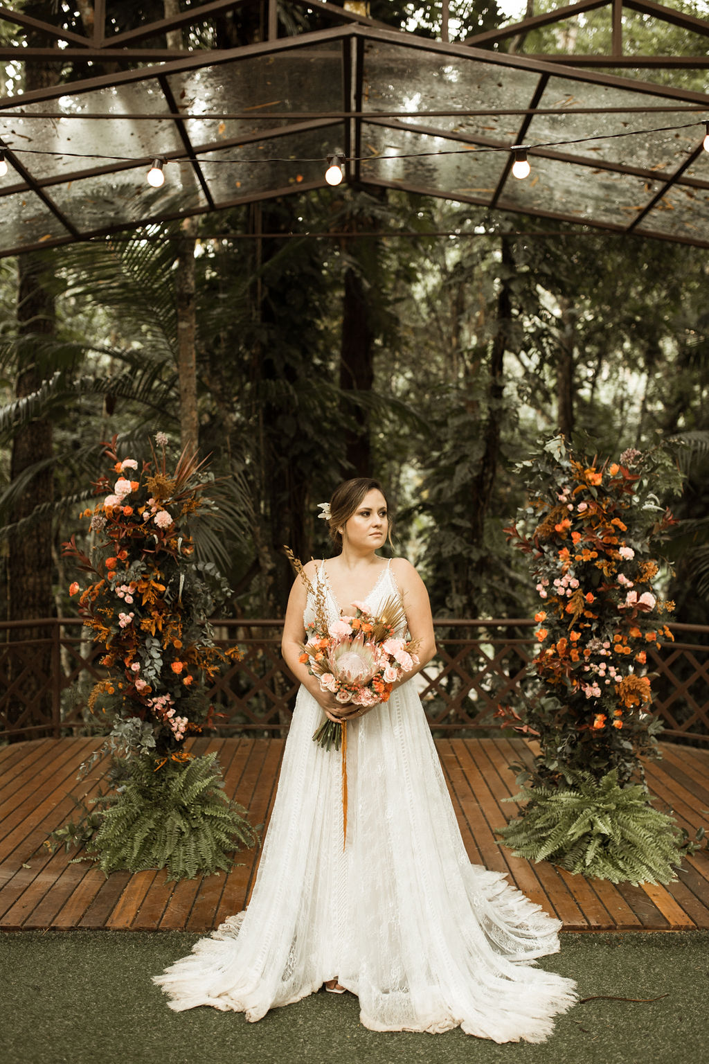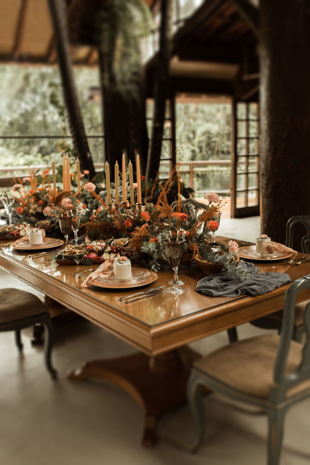 A decoração por Dani Bastos, da Flores de Provence, destacou os pontos fortes do local e entregou verdadeiros cenários de contos de fadas.