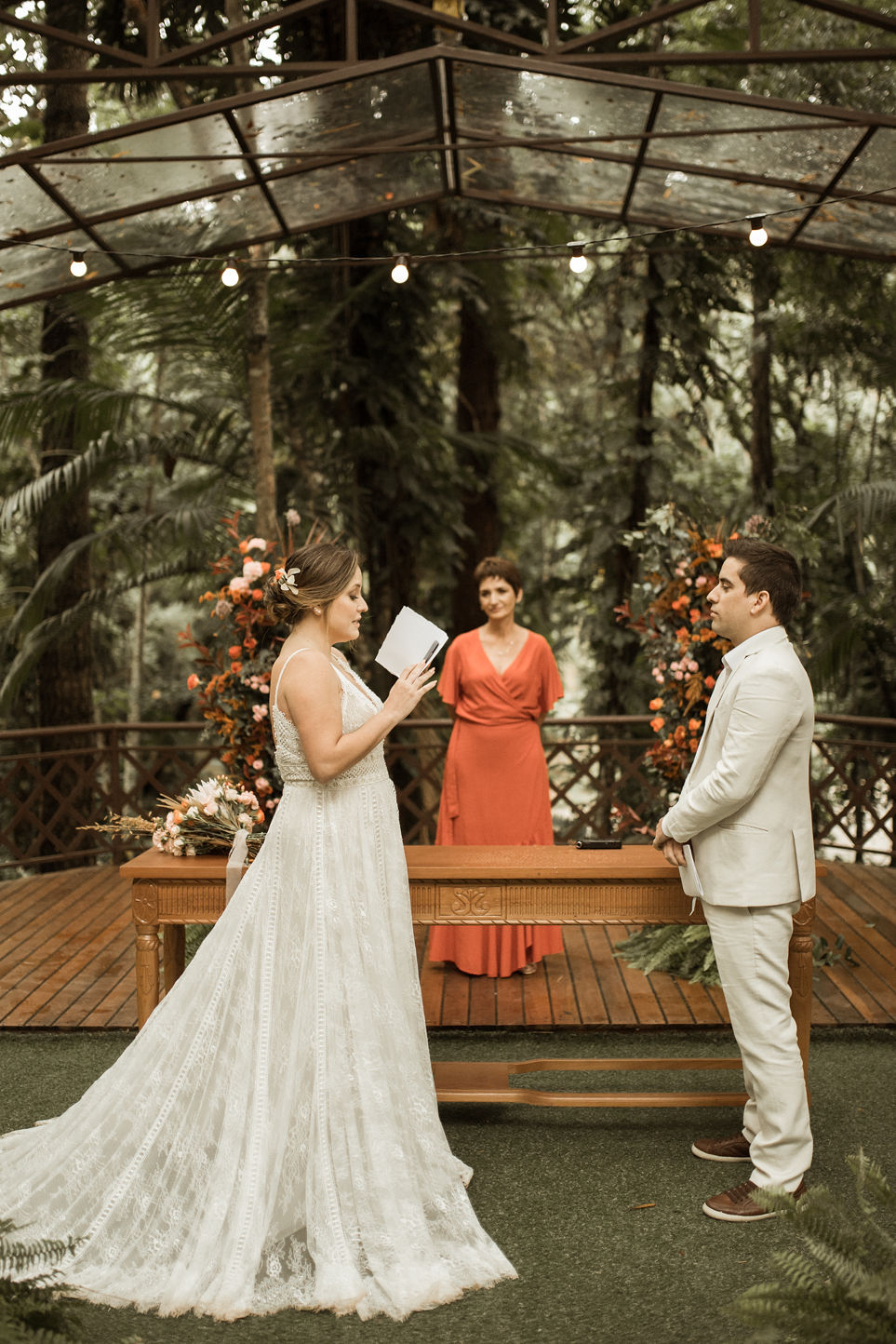 “O tratamento da minha mãe seguiu nesse último mês. Ela estava muito debilitada apesar de lutar muito, e no dia do meu casamento civil meu pai chegou sozinho, com cara de choro. Já desmoronei ali, era inimaginável eu dizer sim para um passo tão grande na minha vida sem a presença da minha mãe.