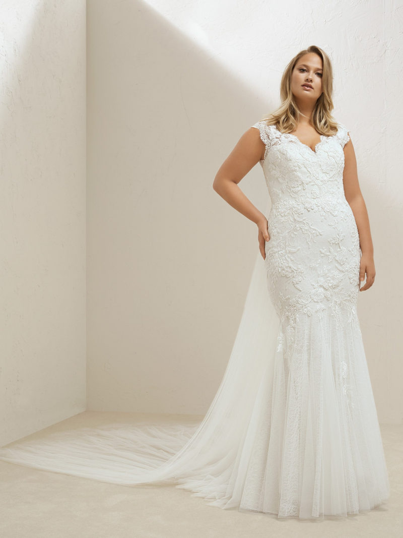 Assim como na moda bridal tradicional, a noiva plus size se depara com algumas tendências: capas, aplicações florais, flores 3D, franjas e laços são algumas delas.