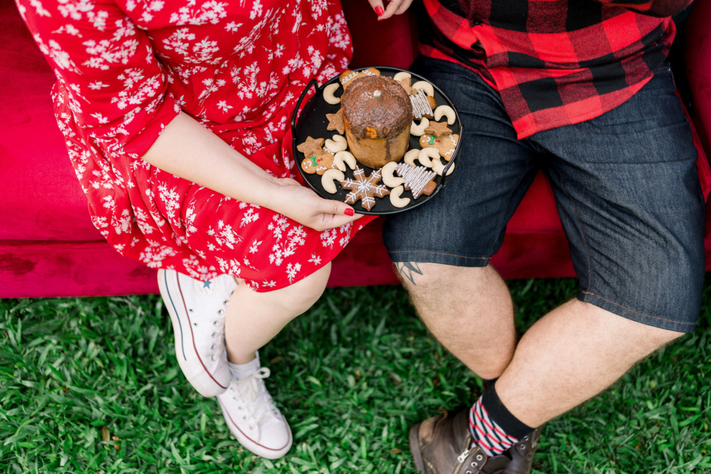 Com o propósito de nos sentirmos à vontade e ainda mais conectados, escolhemos realizar o ensaio de Natal no Ravena Garden, onde nos casamos.