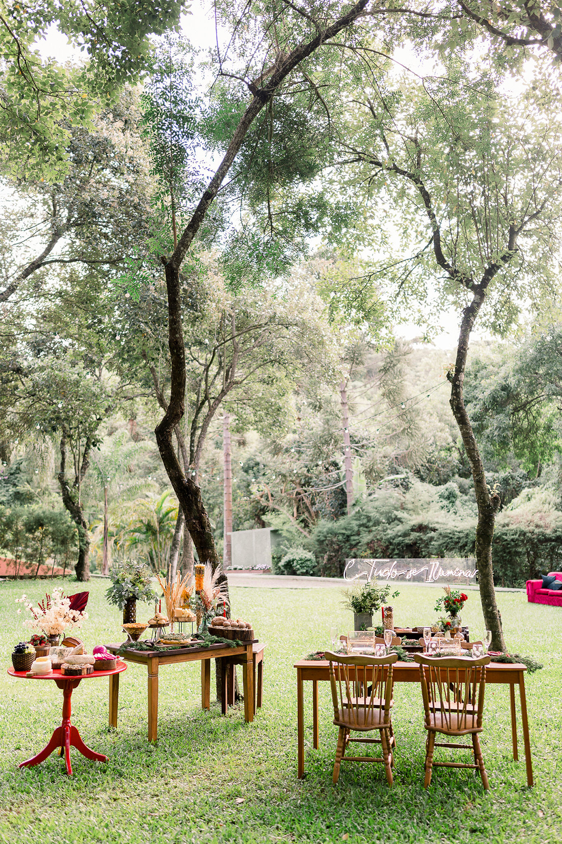 A decoração da Flor e Afeto, da qual somos fãs, encaixou perfeitamente com o bosque. Aliás, uma decoração dos sonhos. Simples, elegante, delicada e despretensiosa, assim como imaginamos ao convidá-la para a produção.