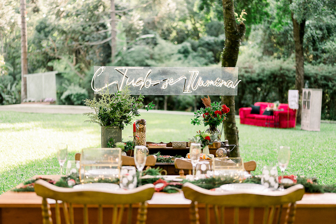 Espaço, móveis e gastronomia: Ravena GardenDecoração: Flor e Afeto AtelierFotos: Cama de GatoFilme: Bruno FerreiraMesa posta: Villa PanoBeleza: Grazi AlmeidaBiscoitos: PanyaNeon: Ateliê Neon CampinasAssessoria: Cynthia CruzAcessórios: Alessandra Cazzaro