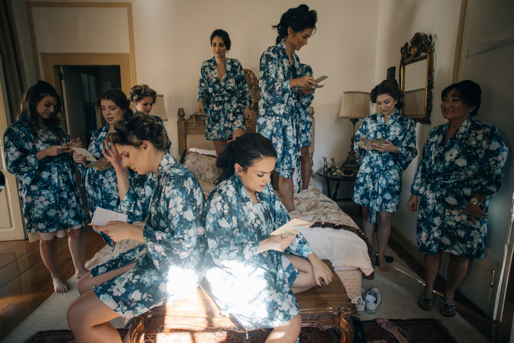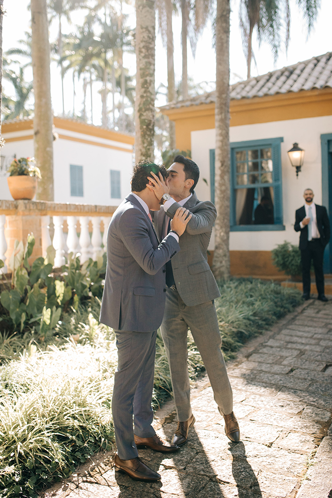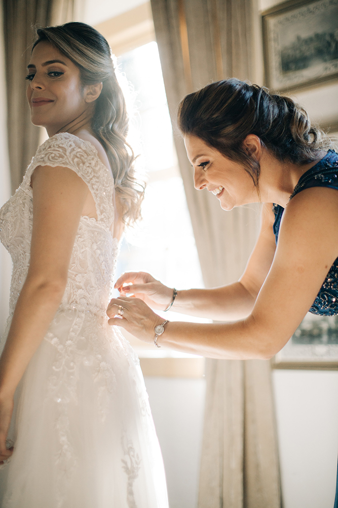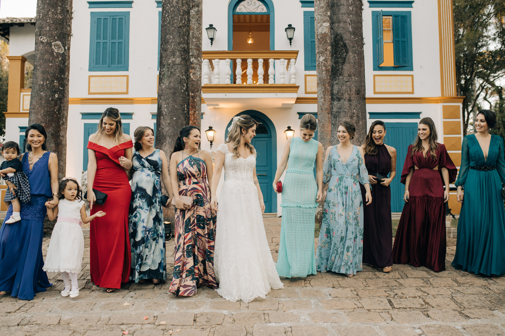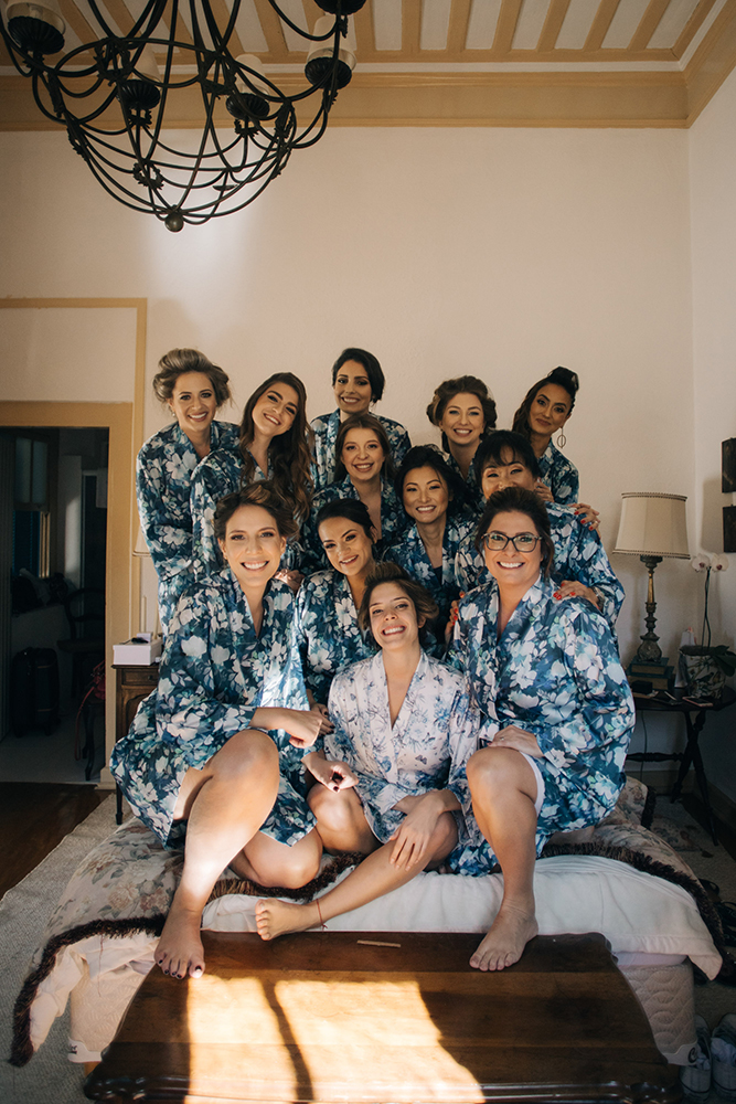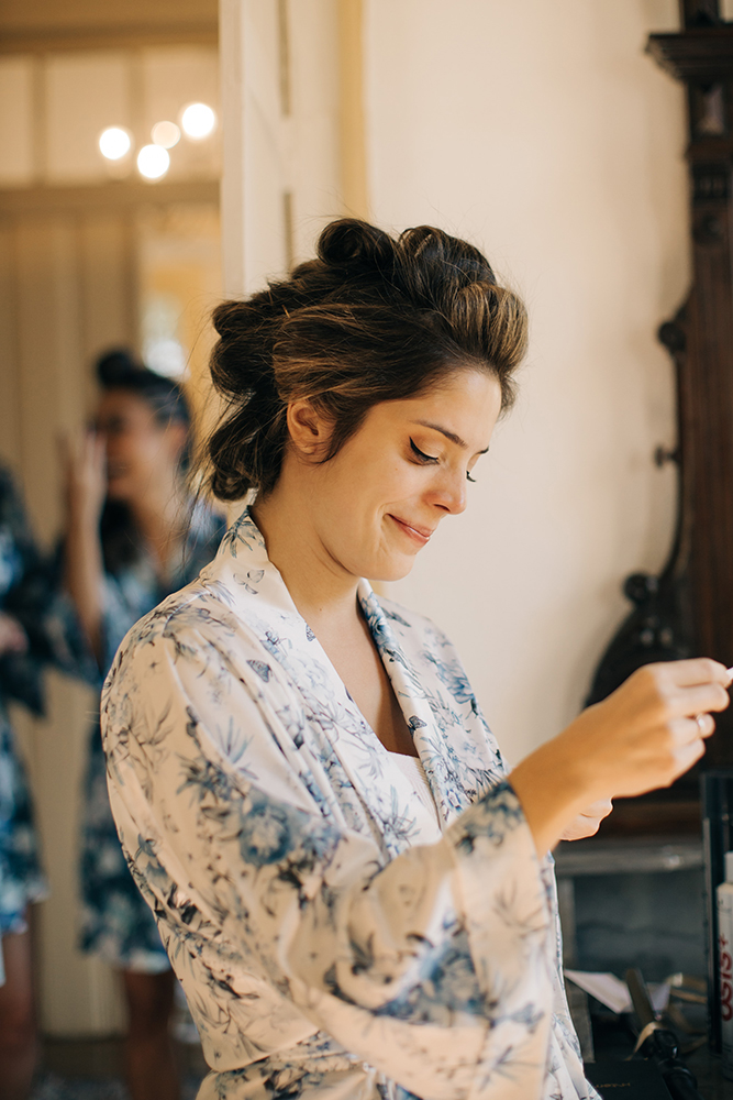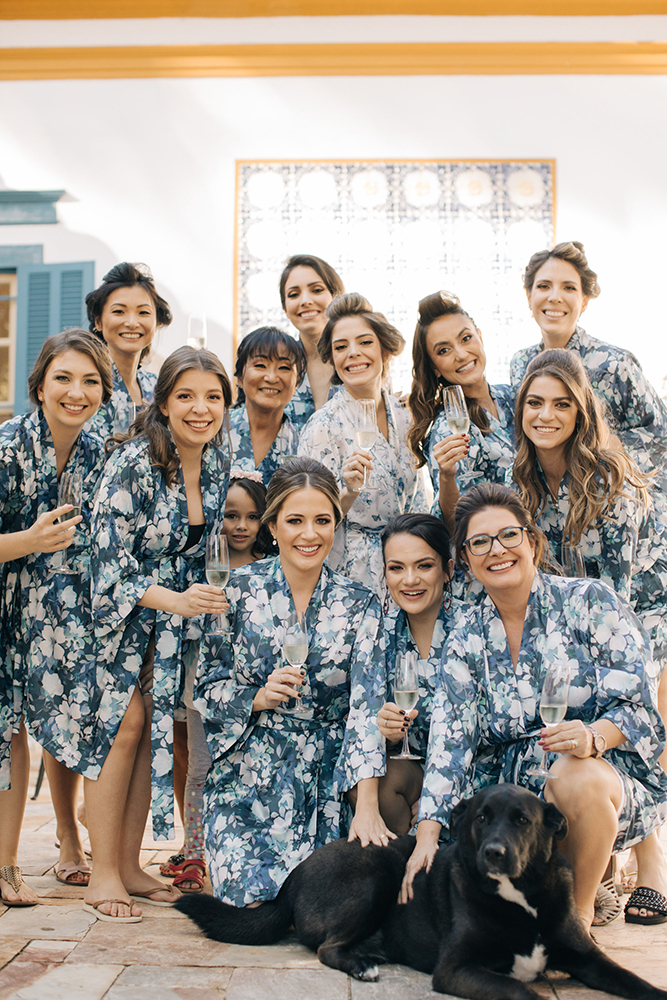 ♥ As fotos do making of. Os registros que antecederam a cerimônia estão espetaculares, incluindo madrinhas com lindos robes estampados, padrinhos animados e emoção de sobra nas cenas da noiva com seus pais.
