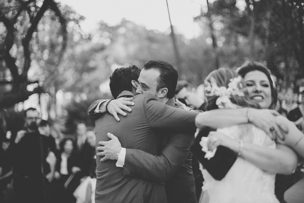 Nosso casamento foi o mais especial possível. Tivemos a sorte de contar com um dia abençoado e sem nenhuma nuvem no céu. Nossos padrinhos e pais passaram o dia com a gente e foi tudo muito feliz e emocionante.