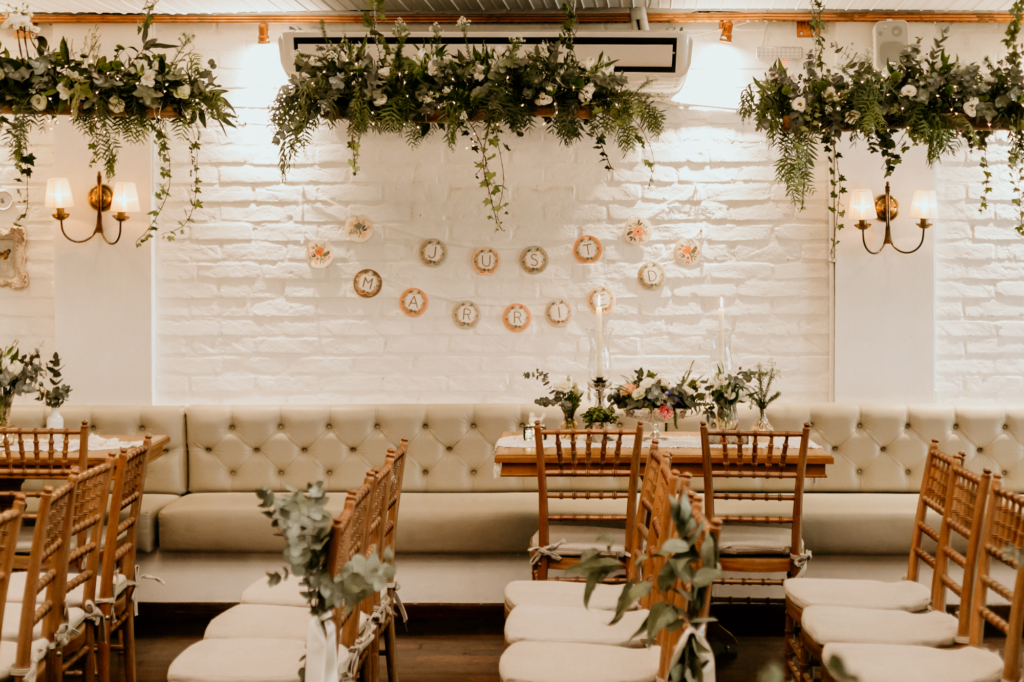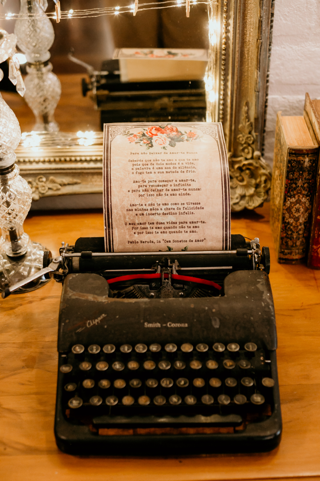 Da sala da noiva ao ambiente da cerimônia, fomos brindados pelos papéis de parede, porta-retratos, detalhes e flores. De fato, um bom lugar para casar!